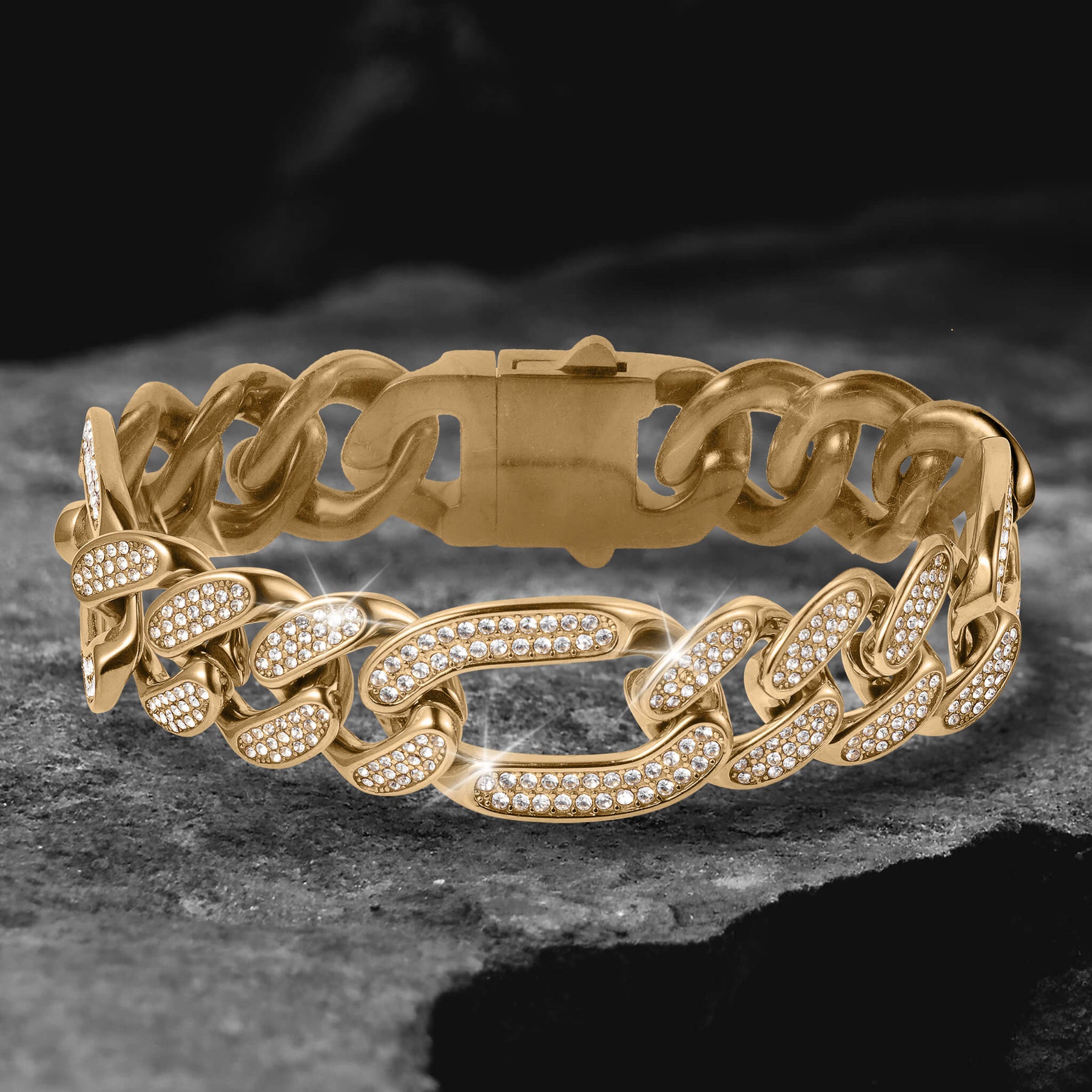 Crafted from premium grade stainless steel and adorned with radiant Diamondeau®, flawless simulated diamond, this cuban link bracelet commands attention from every angle. The heavy, flat links are precision polished and fully encrusted, delivering unmatched shine and presence. A secure box-lock clasp blends seamlessly into the design, ensuring both style and confidence in every wear. This is more than a bracelet; it is crafted to crown your look with power and presence.