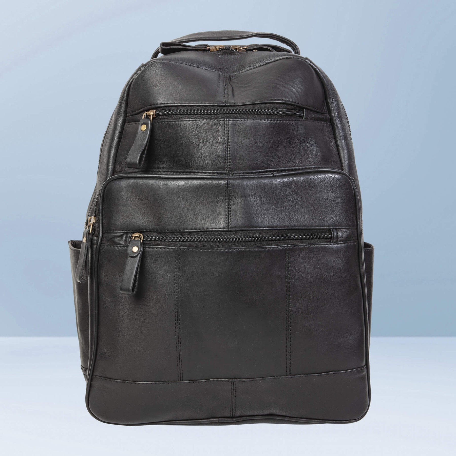 Crafted from premium genuine leather, this backpack is designed to keep up with the dynamic rhythm of urban life - seamlessly blending refined style with practical functionality. Multiple thoughtfully designed compartments provide dedicated space for your laptop, documents, tech accessories, and daily essentials, ensuring everything stays organized and easily accessible. The durable black leather exterior, reinforced stitching, and quality hardware are built to withstand the wear and tear of a demanding schedule. Engineered to keep pace with every step of your day, it adapts effortlessly to your busy life and evolving needs, making it the ultimate companion.