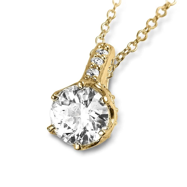 If you ever wanted to fool your friends and colleagues that you had treated yourself to a suite of Diamond jewelry then this is the collection to do it with. Each piece contains one of our solitaire Diamondeau® - flawless simulated diamond weighing in at a realistic 2 carats each. The crown shaped solid 925 Gold Sterling Silver settings are understated but detailed enough to look really expensive.