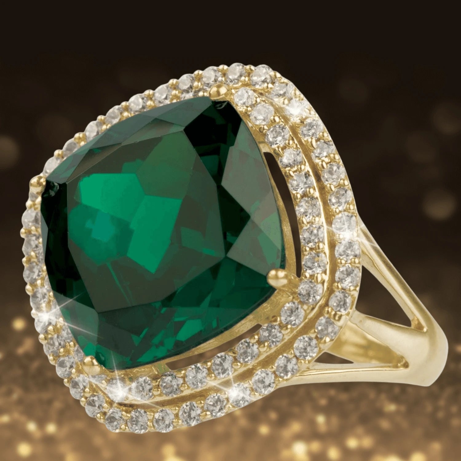 Beautiful in its simplicity. Our Marie green collection is fashioned from sterling silver and plated with 18k gold. Each piece is set with a 15ct princess cut green Diamondeau® - flawless simulated diamond. The pendant is set with a further 0.80ct of classic Diamondeau® - flawless simulated diamond, And the ring 0.72ct. The perfect accessory for any outfit.