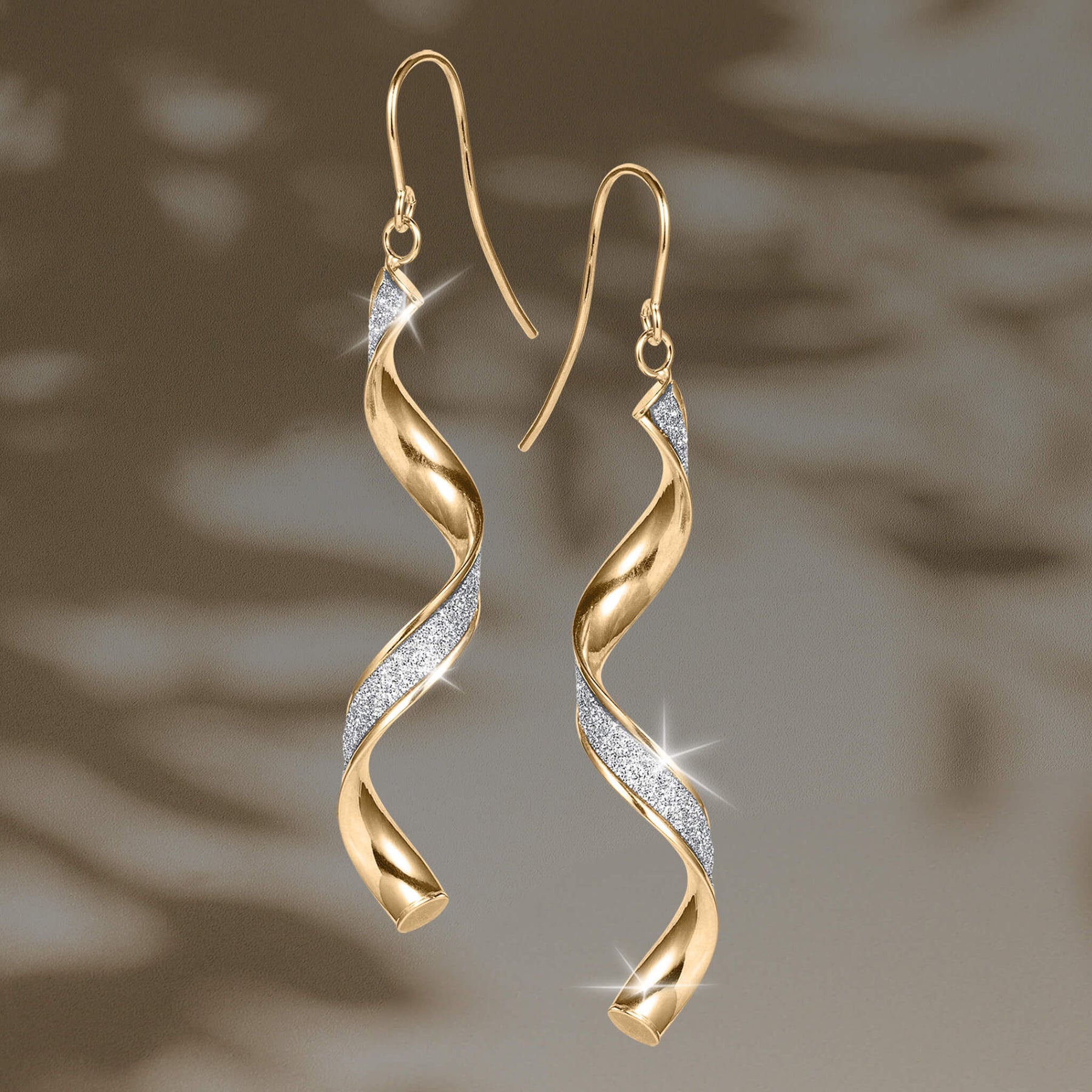 Add a touch of exceptional Italian elegance to your jewelry collection with these gracefully twisted sterling silver earrings; finished in radiant 18k yellow gold and shimmering silver glitter. Inspired by fluid motion and sculpted light, each piece is meticulously crafted in Tuscany, Italy, where enduring design meets artisanal excellence. Classical yet striking, their spiral form dances with every step, catching the light and turning heads. Perfect for improving both everyday and evening looks with ease.