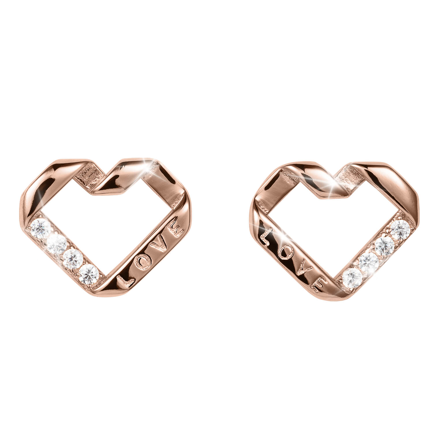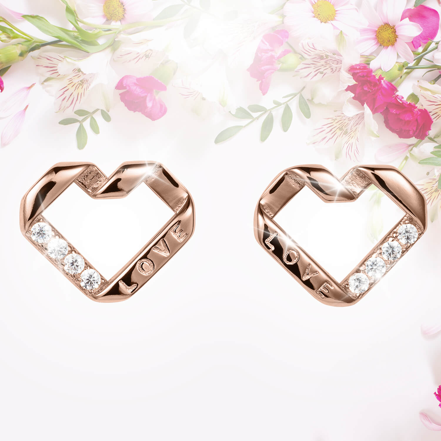 Stunning heart shaped rose gold plated sterling silver earrings with sparkling Diamondeau® - flawless simulated diamond.