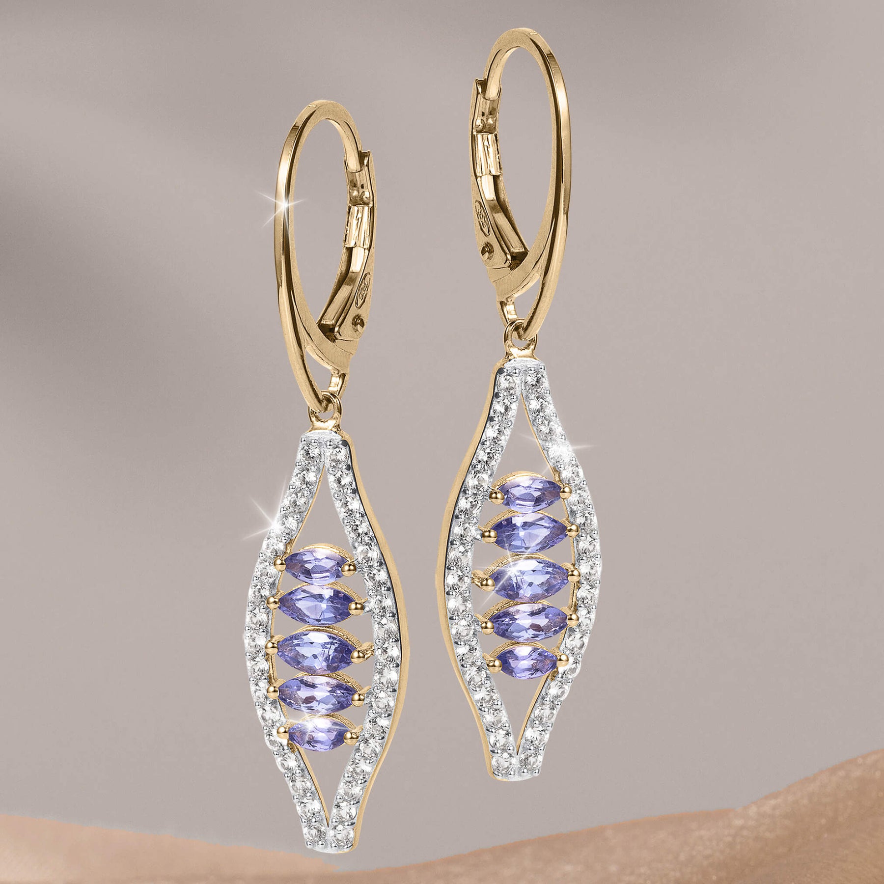 Indulge in timeless luxury. Meticulously crafted from sterling silver and lavishly finished in rich 18k yellow gold Each piece adorned with striking marquise cut, Tanzanite gemstones. Known for its extraordinary rarity and only found in 1 place, making this gemstone as exclusive as it is beautiful. As the birthstone for December, Tanzanite adds a meaningful, elegant gift. Whether you’re celebrating the festive season or a special milestone, this pair is the ideal choice for adding a touch of sparkle to any occasion.