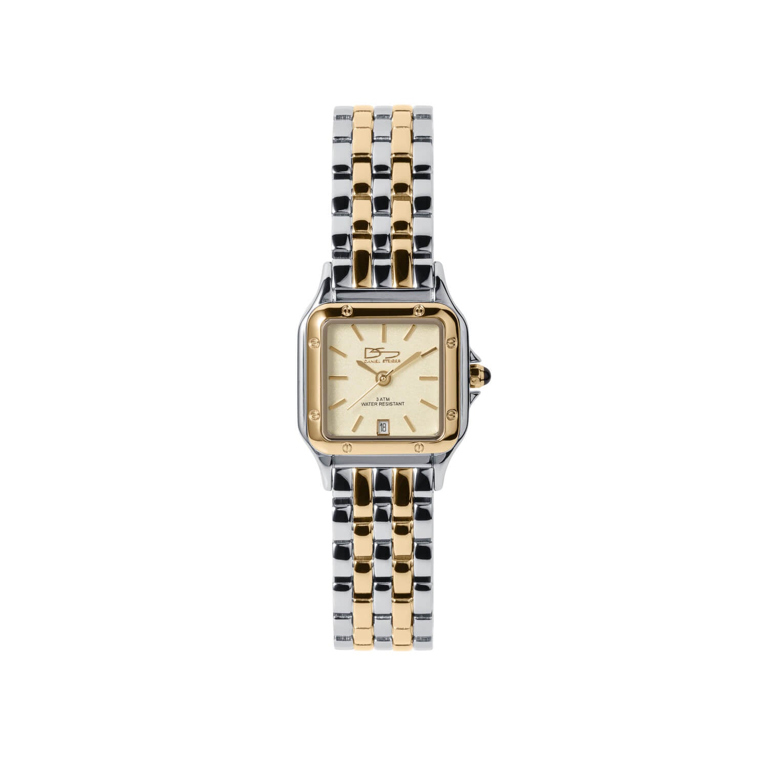 Own a stylish accessory that is both classic and contemporary with our luxurious Skyline timepieces. A champagne dial with useful date window is housed in a square case. A stainless steel, 5 link band in a gold, matt & polished or two tone polished finish seamlessly leads to a gold bezel with groove detail. This collection brings together timeless style and comfort, the ideal matching his and her watches.