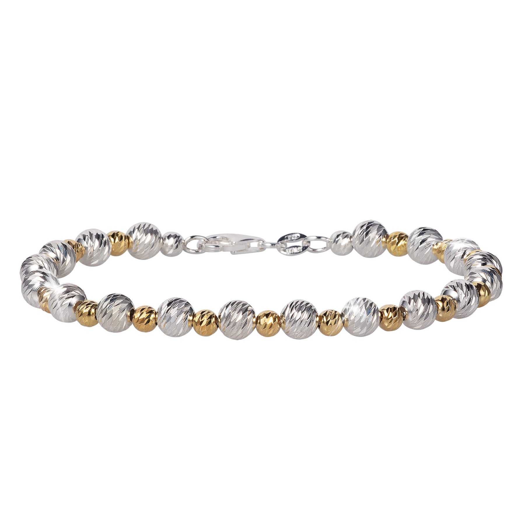 Step into the spotlight this party season with this stunning bracelet, meticulously crafted in Italy from premium sterling silver. This exquisite piece features a harmonious blend of gold plated and silver beads at different sizes, each diamond cut to enhance sparkle and depth, creating a dazzling effect that catches the light beautifully. The ideal bracelet for dressing up your evening attire or adding a touch of elegance to a casual outfit.