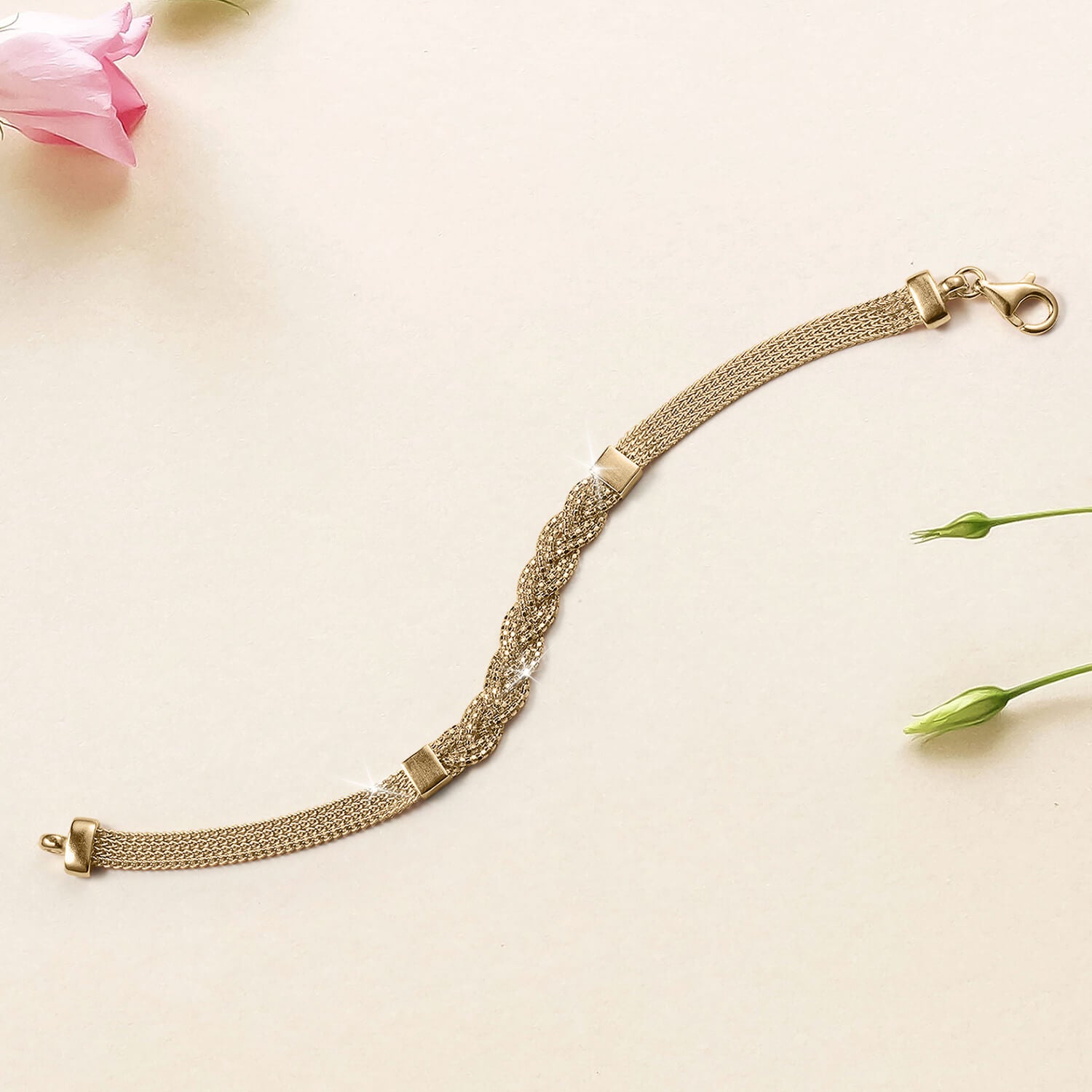 The perfect pop of sparkle, our popcorn chain bracelets are sure to make you shine. Finely crafted by Italian artisans from sterling silver, finished in 18ct yellow gold. Choose from an intricate plaited design, or add some dramatic sparkle, with our shimmering Diamondeau®, flawless simulated diamond. Add interest and dimension to your outfit.