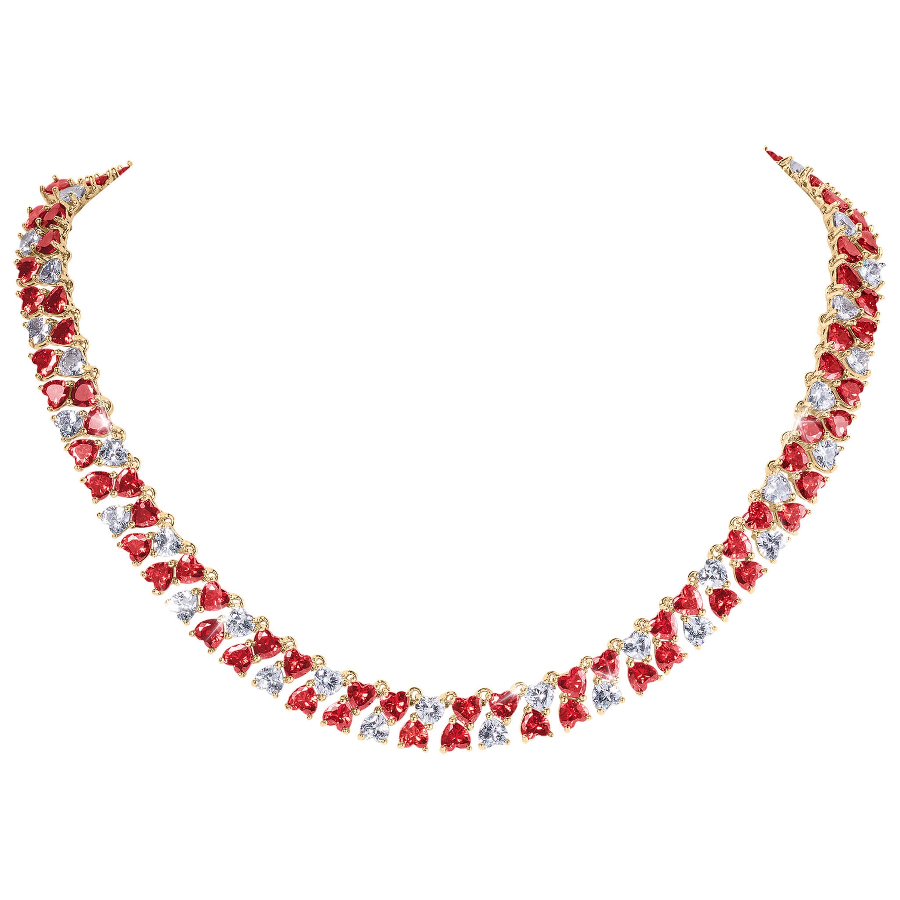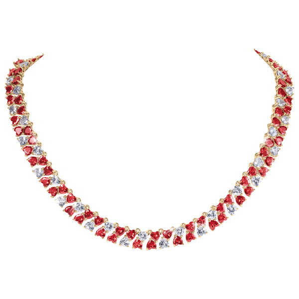 Celebrate love and elegance with this stunning necklace, a timeless symbol of romance and devotion. Adorned with radiant red and white heart-shaped Diamondeau®, flawless simulated diamond stones, it shimmers with passion and sophistication. Designed to add a touch of glamour and heartfelt charm to any outfit, this necklace is the perfect way to show her just how much she means to you.