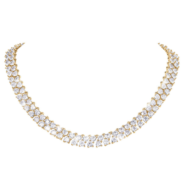 Celebrate Valentine's Day this year with the gift of love in the form of this stunning heart collection. A double row of sparkling white heart shaped Diamondeau®, flawless simulated diamond are encrusted along the entirety of this necklace. Matching drop earrings complete the collection which is luxuriously finished in yellow gold. The ideal gift she will enjoy all year long.