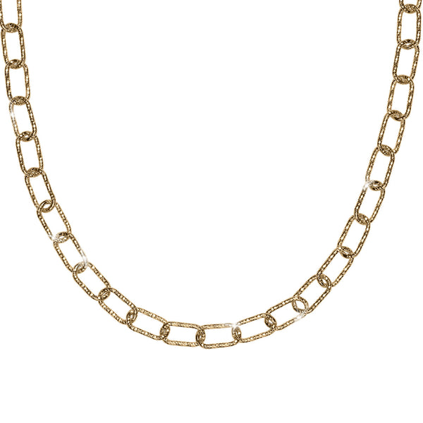 A luxurious and elegant necklace that is perfect for any woman looking to add a touch of sophistication to her wardrobe. This stunning necklace has been finely crafted from sterling silver, finished in 18k yellow gold in Arezzo, Italy, by skilled artisans. One of the most striking features is the diamond cutting detail that has been added to each paperclip link. This subtle yet effective design element adds a touch of sparkle and shine to the jewelry, making it perfect for special occasions or simply to add a touch of glamour to your everyday look.