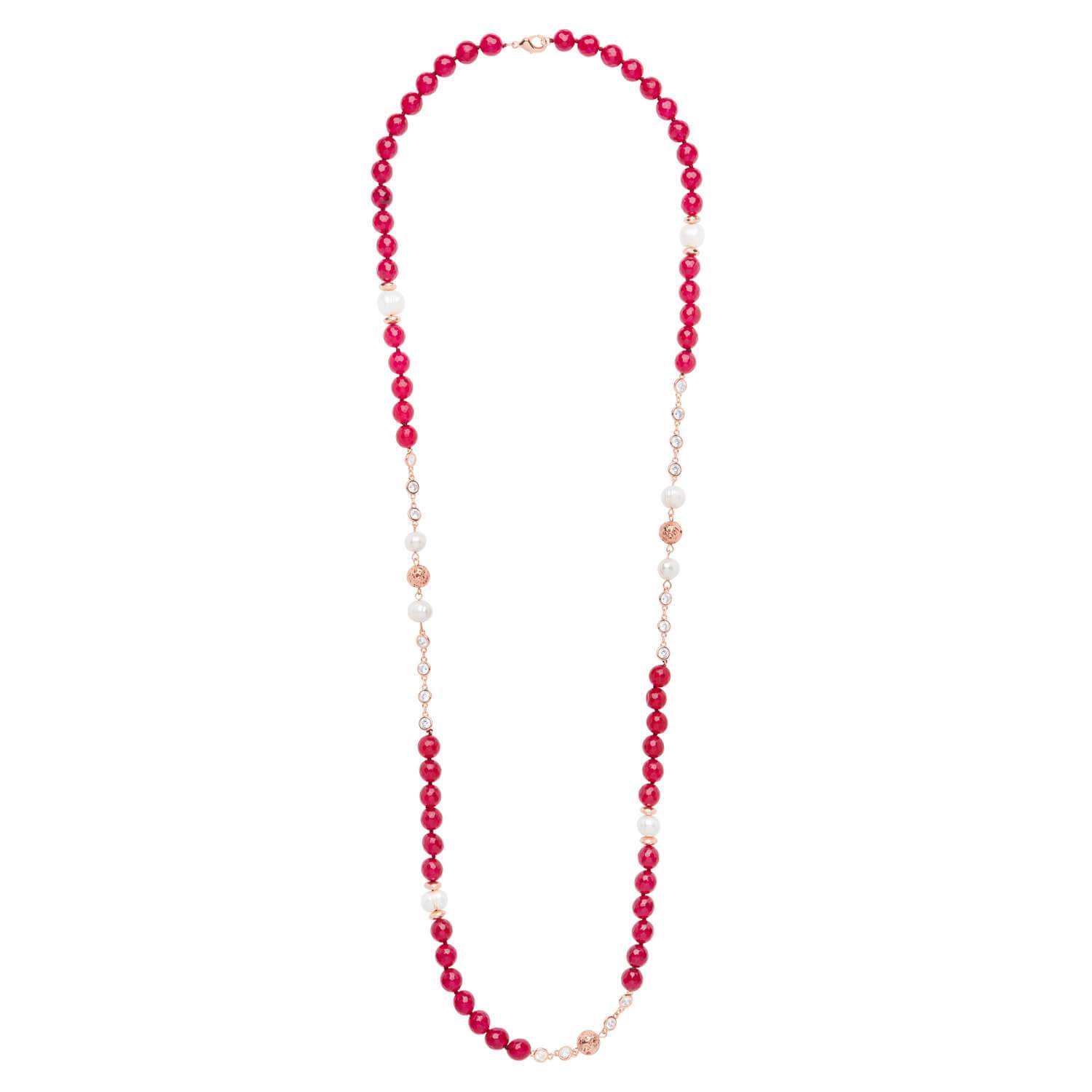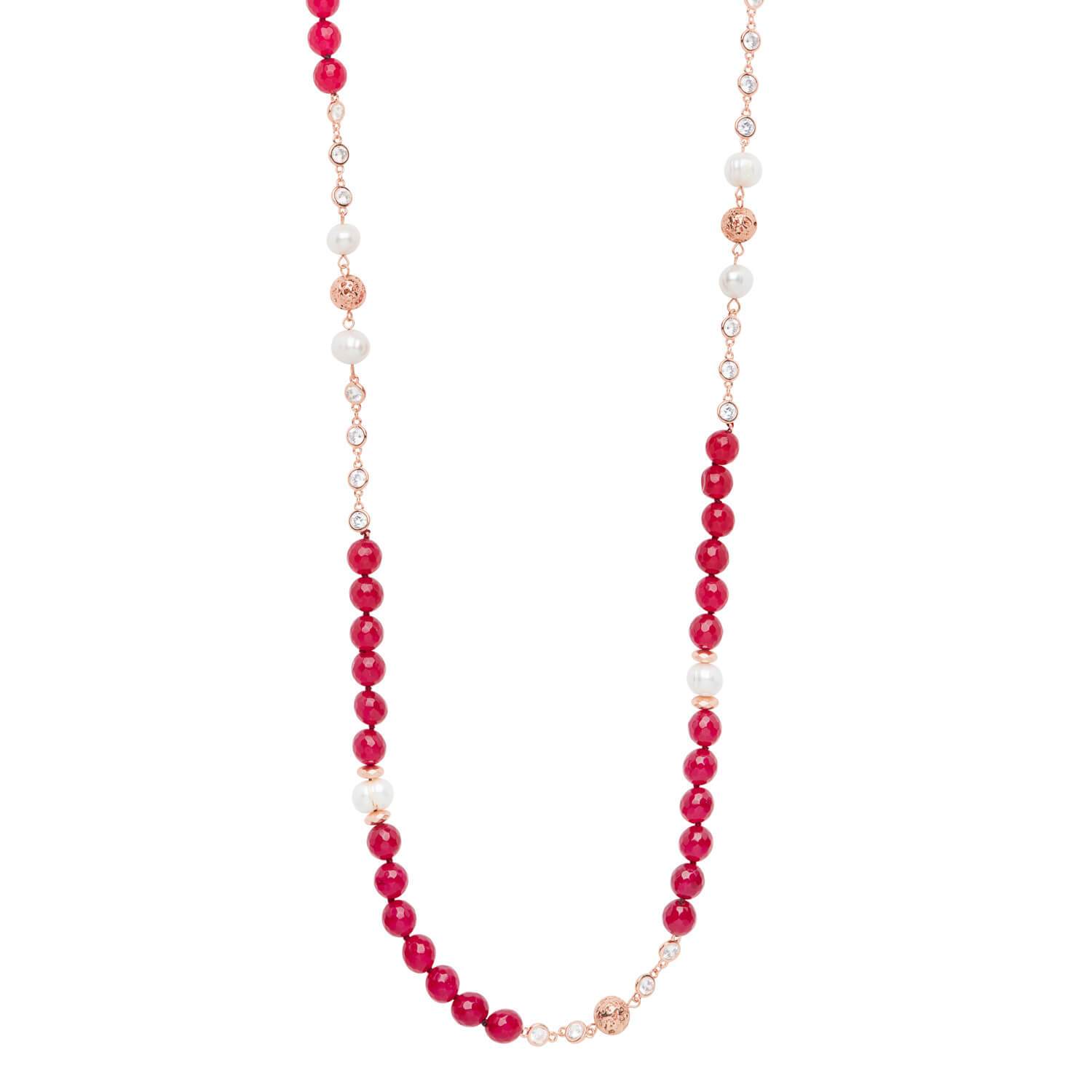 Inspired by long evenings and nightfall beneath the stars, our Stella collection was created by our designers. Red Agate beads and pearls are set in an asymmetrical pattern. Brilliant white Diamondeau®, flawless simulated diamond twinkle like stars in the night sky. A final touch has been added with beads that resemble meteorites, luxuriously finished in a soft rose gold.