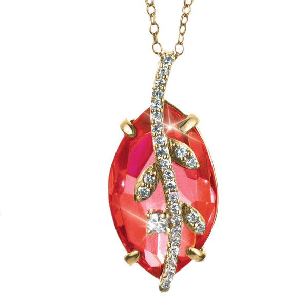 Fire Garnets are famed for their inner glow, it almost looks like someone has struck a match and lit a fire inside each gem. Of course you can pay a huge premium to get this rich color. We have created the same look at a fraction of the cost using our flawless lab created Garnets, which are with the exact same technique as any mined gem. Each beautiful Marquis cut gem is wrapped in a vine like mount of the finest 925 solid sterling lavishly plated in 18k yellow gold and set with dozens of our sparkling Diamondeau® - flawless simulated diamonds.