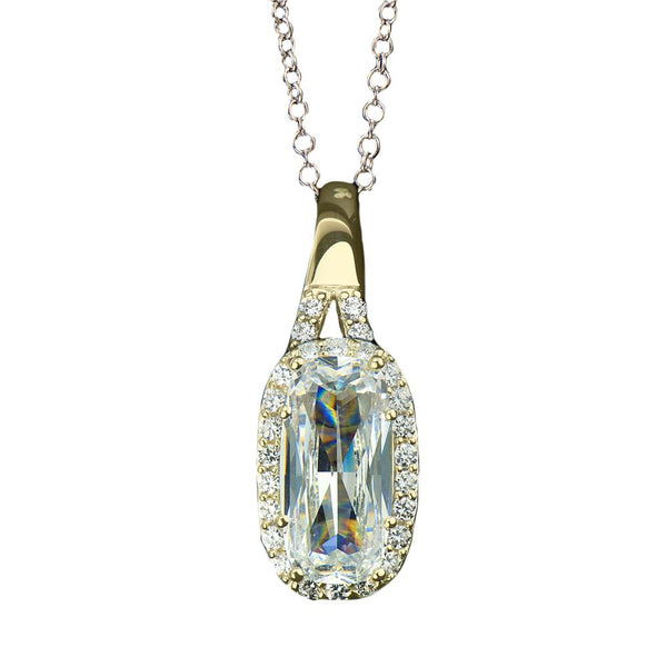 As cool as ice but full of fire and sparkle. This achingly glamorous collection of solid 925 Sterling Silver is set many of our flawless Diamondeau® - flawless simulated diamonds. A combination of unusual cushion rectangular cuts and round brilliants comes together brilliantly. Plated in 18k yellow gold.