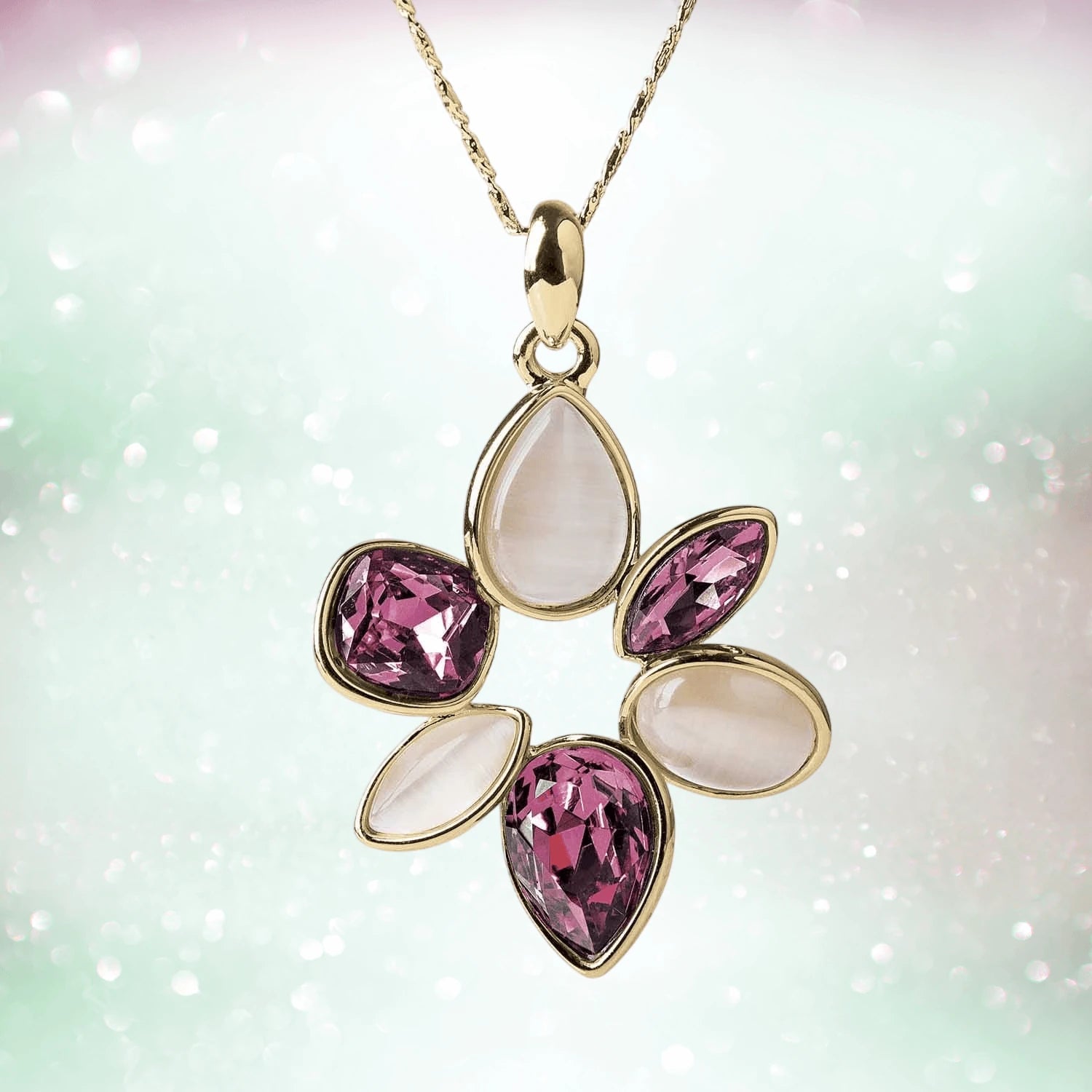 You will be sure to be completely captivated by this stunning masterpiece. The mixture of pear-shape, princess cuts, marquise and oval cuts add a vibrant intrigue. Available in luxurious rose or yellow gold plated finishes