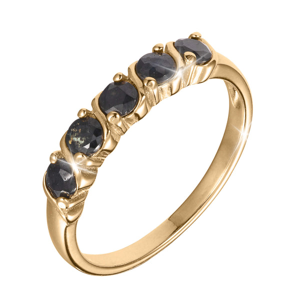 Stunning midnight sapphire set in gold plated sterling silver. A real talking piece.