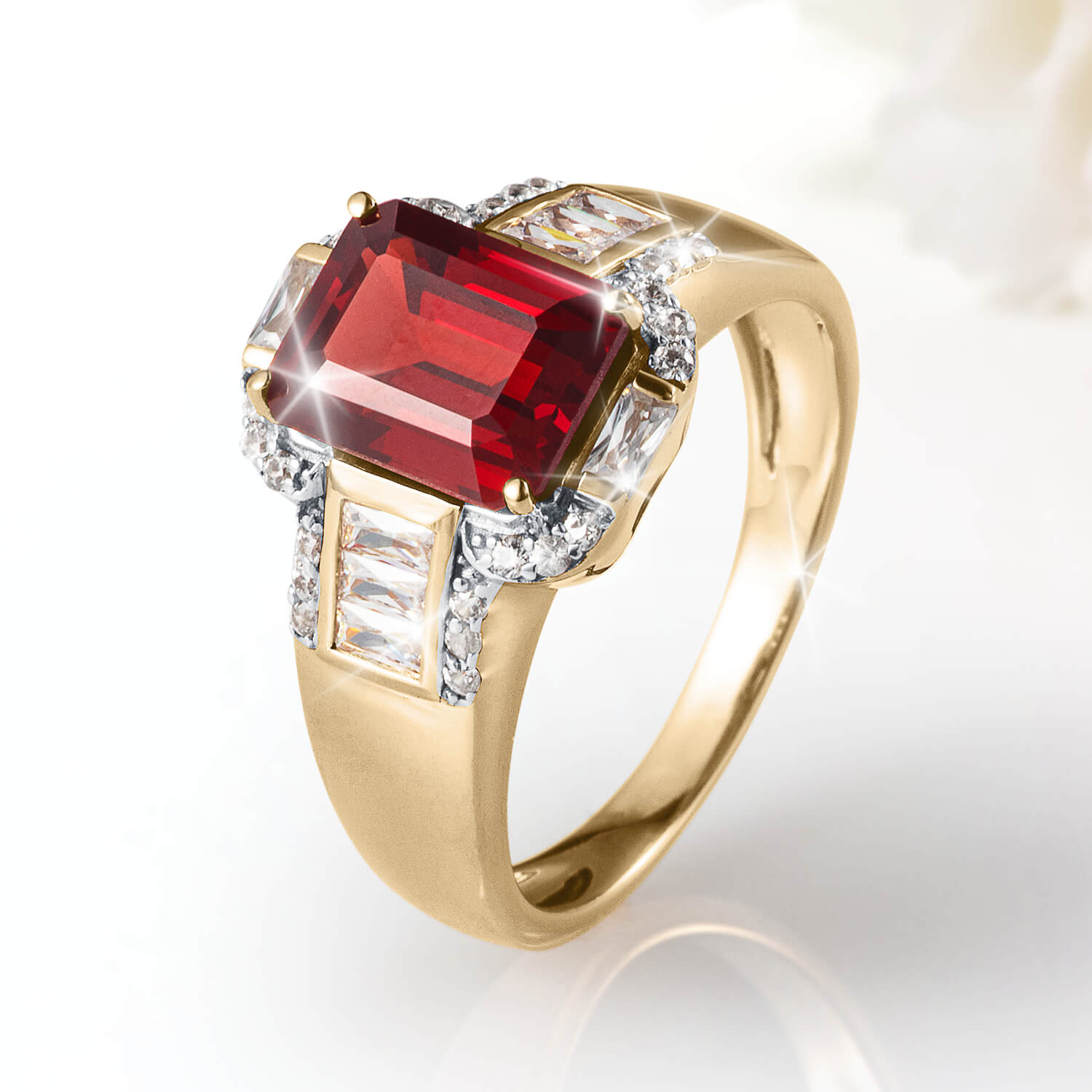 A timeless collection that will never go out of style. Exquisitely crafted from sterling silver with a lustrous 18k yellow gold finish. Featuring a shimmering Garnet at the heart of each piece, highlighted with white Diamondeau®, flawless simulated diamond. Garnet is the birthstone for January, making this the ideal gift or the perfect addition to your jewelry collection.