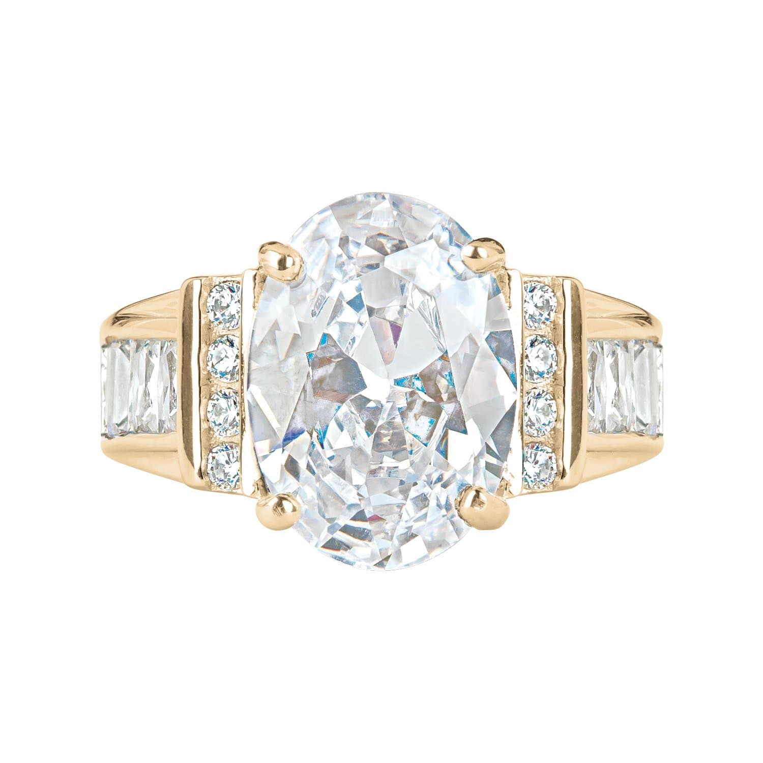 Her name evokes timeless glamour, and Elizabeth Taylor’s jewelry collection has inspired this stunning Diamondeau® - flawless simulated diamond ring. The main star of this ring is a decadent 5.81 carat classic Diamondeau® - flawless simulated diamond, surrounded by a further 2.56 carats of gems. Making over 8ct in total; this ring will not fail to capture onlookers stares.