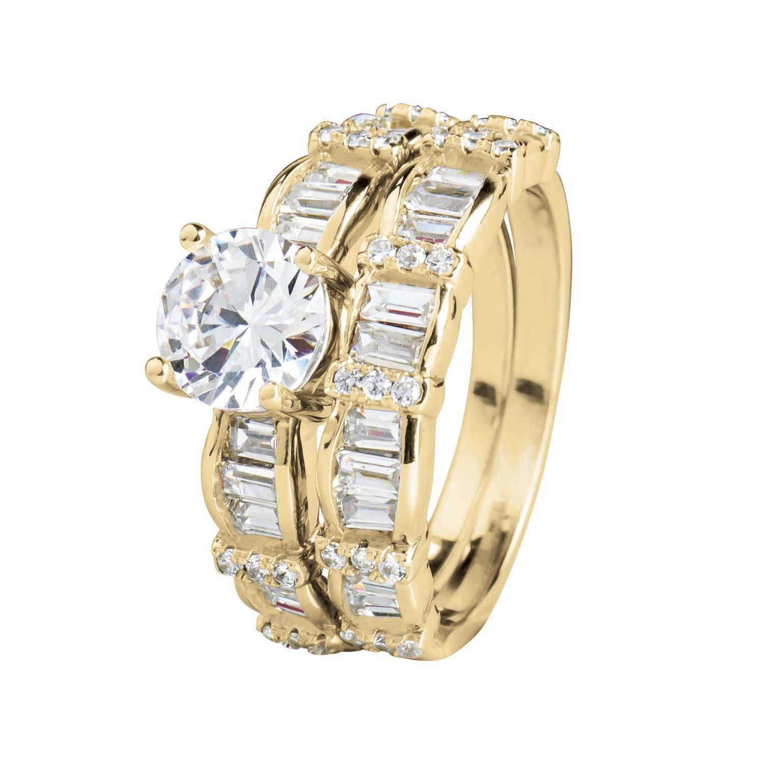 Enjoying your days relaxing working on ‘Fiji time’, where you can spend your days in admiration of its scenery, or immerse yourself by diving into coral reefs in the Cook Islands; given its name from the explorer who discovered them. Inspired by the glistening waters, beaches and skies of these beautiful locations; we bring you this 2-in-1 ring. Meticulousness crafted in sterling silver plated in 18k yellow gold and precision set with a total of nearly 4 carats of glistening Diamondeau® - flawless simulated diamond - start planning your island escape to the South Pacific.