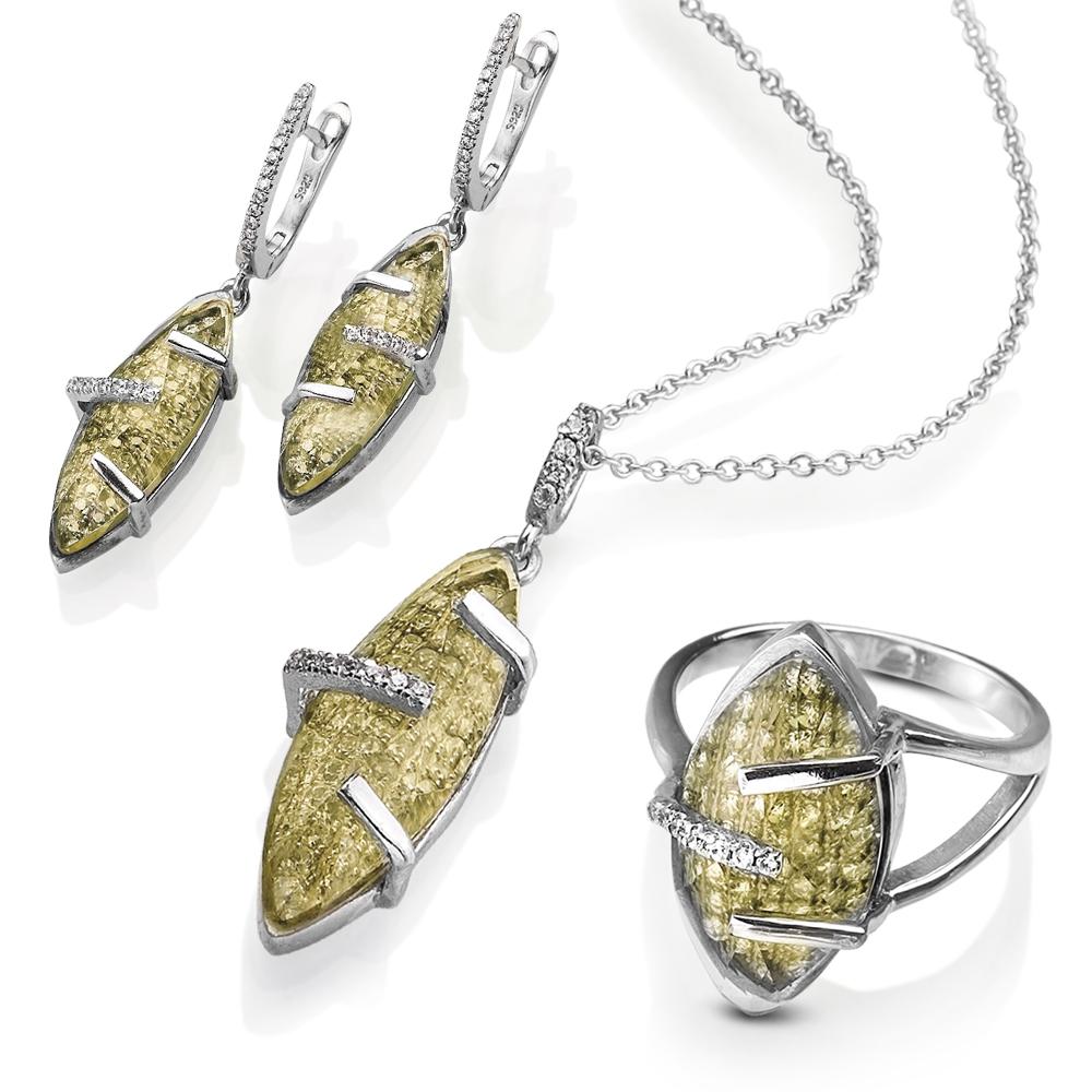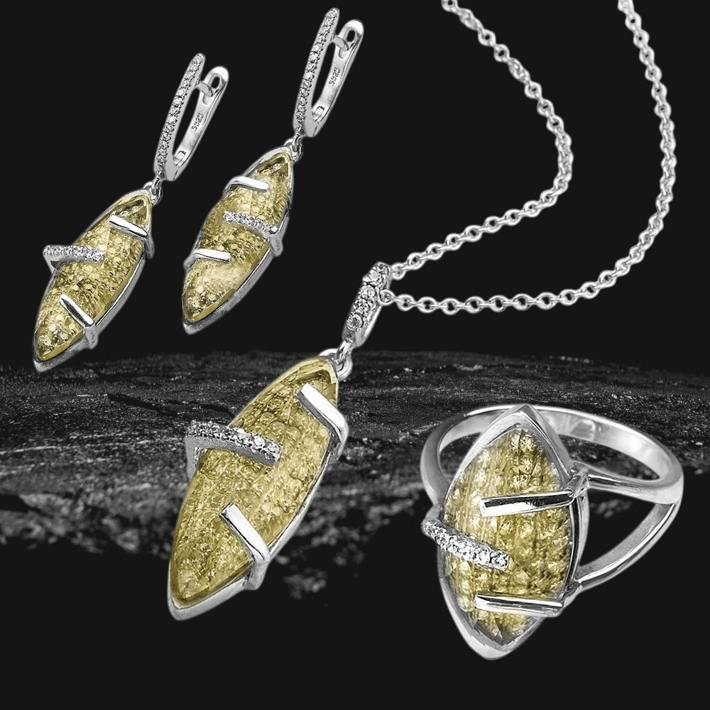 This contemporary collection, has a modern sculptural feel to it, almost if it has been made bespoke especially for you. Marquise shaped solid 925 Sterling silver settings are mounted with lakes of pave set Diamondeau® - flawless simulated diamond. They are then captured in place by graphically cut Diamondeau® - flawless simulated diamond in a delicate shade of pale lemon. Pendant includes 18 Inch chain with our compliments