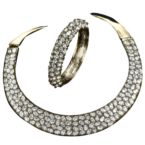 The night sky is a thing of beauty. The night sky in the summer is one of the most amazing things and this collection generously plated in 18k Yellow Gold features over 200 dazzling crystals, mimicking the stars of our galaxy. The bracelet with a magnetic clasp is kept gently in place and fits neatly around your wrist. A statement piece of fashion will add an extra glow to your neckline.