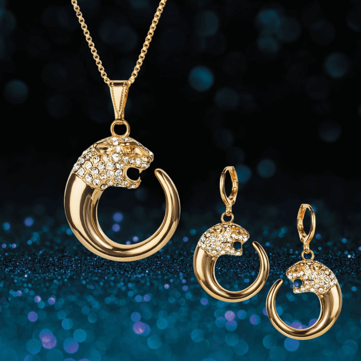 A master of camouflage and stealth, the leopard's secretive existence has ensured its survival. This awesome collection is sure to be a conversational piece and not have you hiding in the shadows. Exquisitely plated in 18k yellow gold and set with 140 sparkling crystals. This collection is just purrrrfect.
