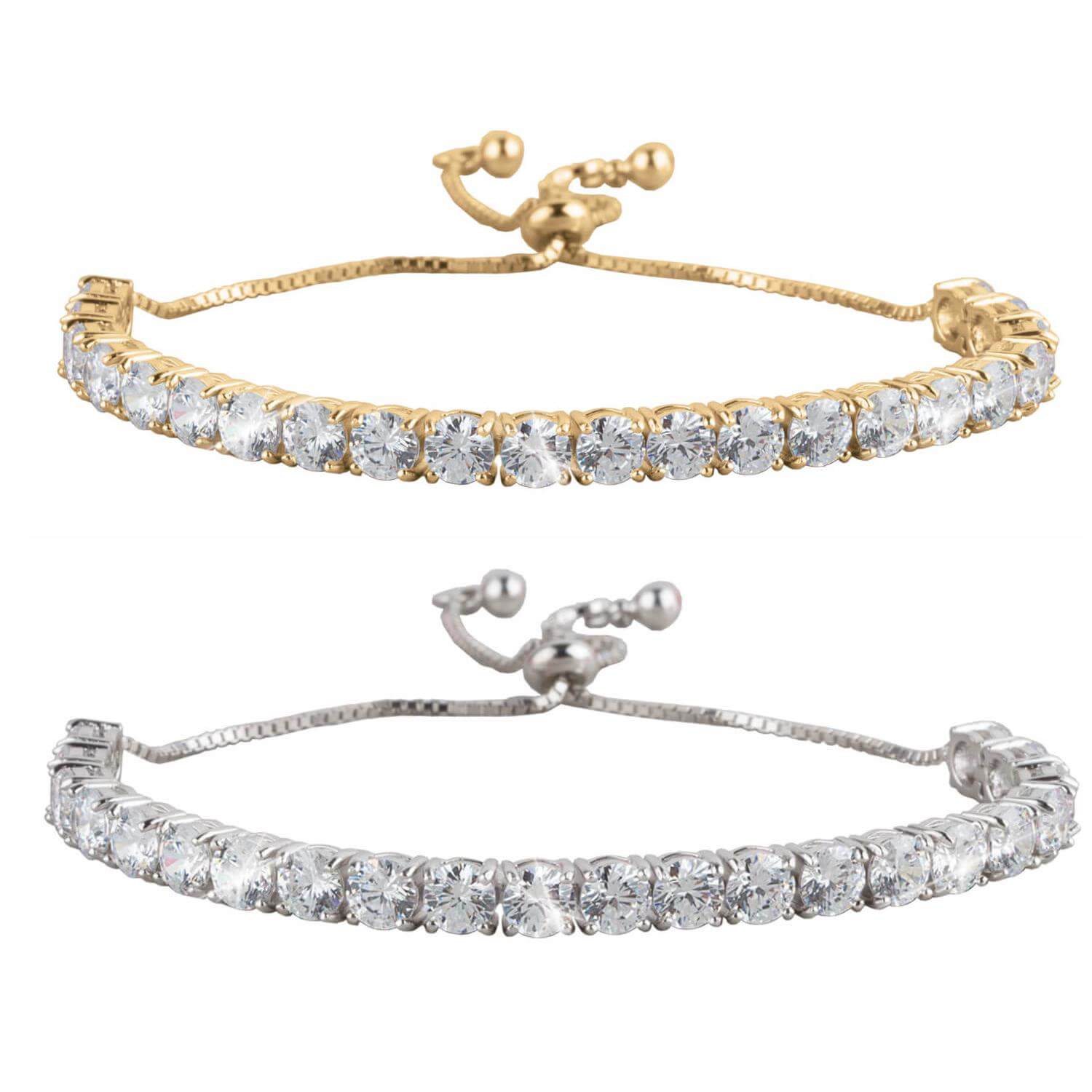 Adjustable bracelets have become an on trend jewelry item, not just for their gorgeous look, but they are so easy to put on. If you have trouble doing a bracelet up yourself this is perfect for you. Just pull one side and the bracelet easily fits around your wrist. Not only is this an awesome advantage to this magnificent bracelet, it is also set with 20 sparkly white Diamondeau® - flawless simulated diamond. We love this bracelet so much we have brought it to you in 3 colors. Choose from silver, yellow gold or rose gold. Why not get all three to create a fab layered look?