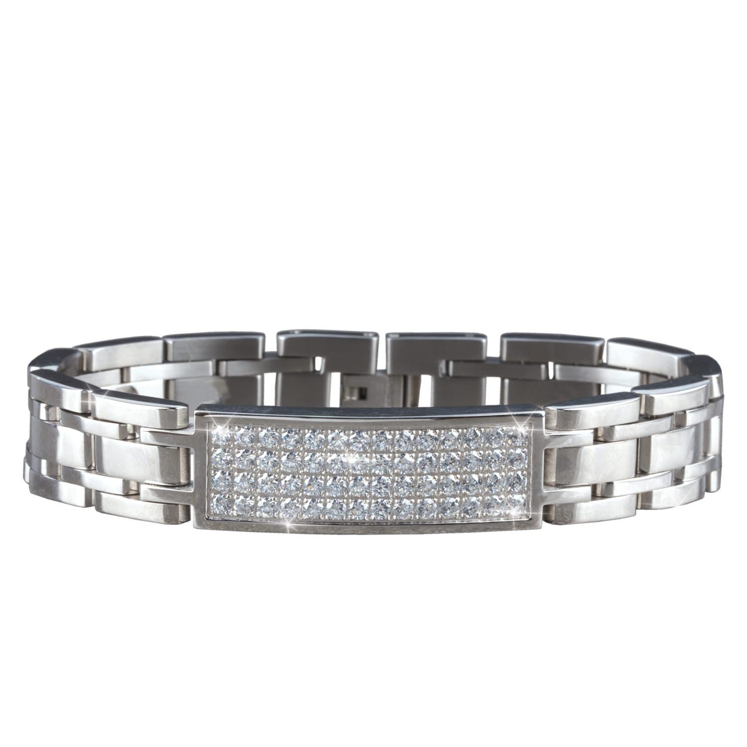 We have of course used only the best premium stainless steel to create these timeless bracelets. These substantial bracelets have the perfect mix of weight, durability and luxury to assure you of their quality. The central ID panel is set with 56 impressive Diamondeau® - flawless simulated diamond. Using the finest materials finished to the highest standards, Timepieces International has developed a vast range of watches and accessories that provide a purposeful, visual statement. These beautiful products are available at astonishingly low prices, often costing less than a quarter of the recommended price. You may ask how we can offer such quality at such low prices? The answer is beautifully simple: we cut out the middleman. This means there are no retail overheads to pay and not the usual mark up to make which can be enormous on luxury watches and jewelry.