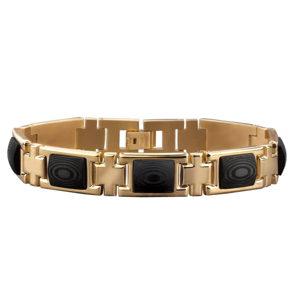This collection is a smart option for the fashion-forward man. A modern, innovative look. Crafted from stainless steel with the rich, warm tones of 18k yellow gold, featuring the strong, durable inserts of bold black carbon fiber.