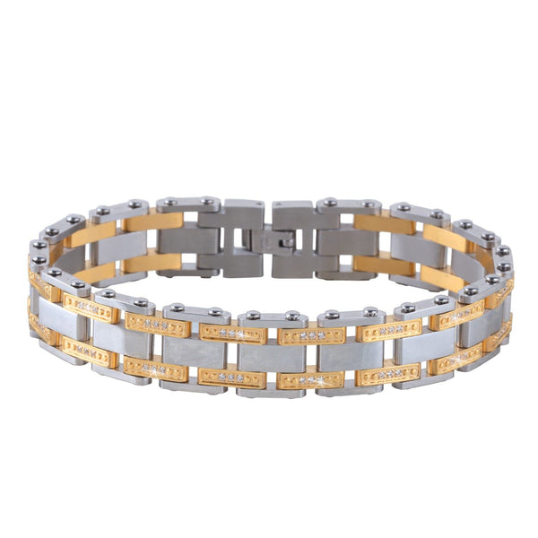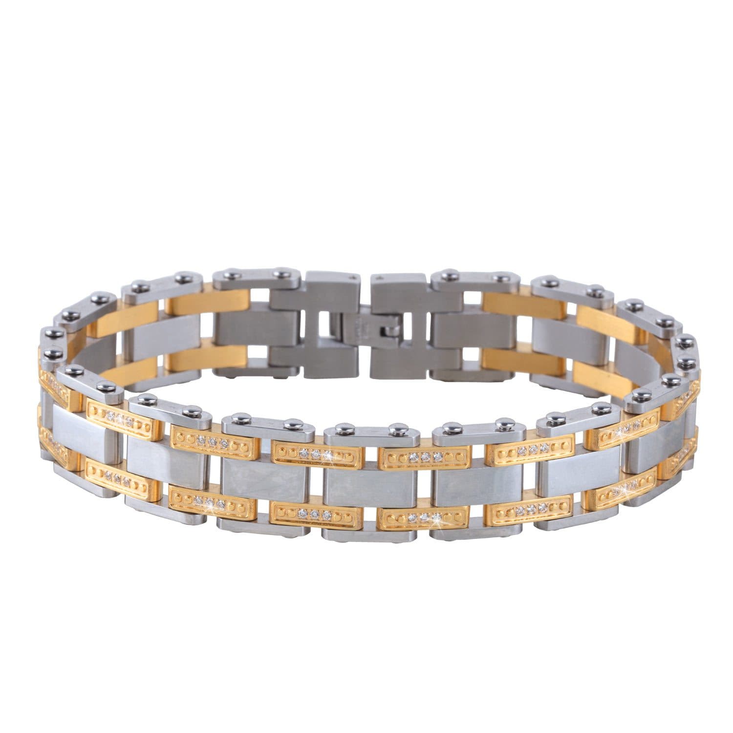Crafted in two-tone premium stainless steel, this designer look features alternating links of finely polished steel with 18k yellow gold finishes. A total of 84 glistening Diamondeau® - flawless simulated diamond are precision set, adding a fire and brilliance to every movement. Using the finest materials finished to the highest standards, Timepieces International has developed a vast range of watches and accessories that provide a purposeful, visual statement. These beautiful products are available at astonishingly low prices, often costing less than a quarter of the recommended price. You may ask how we can offer such quality at such low prices? The answer is beautifully simple: we cut out the middleman. This means there are no retail overheads to pay and not the usual mark up to make which can be enormous on luxury watches and jewelry.