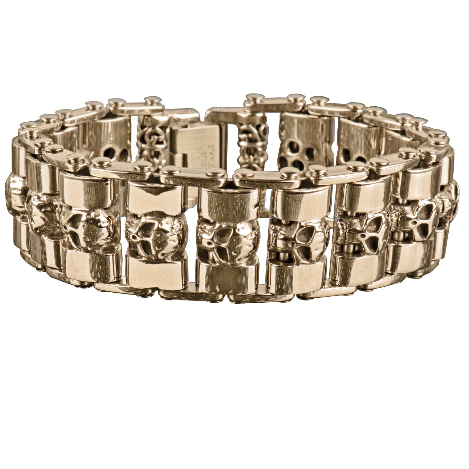 For the modern man, this contemporary bracelet makes a real statement. Formed from premium stainless steel, this ghoulish design features skull details in each section. The bracelet is polished to a bright shine, to make a classic statement.