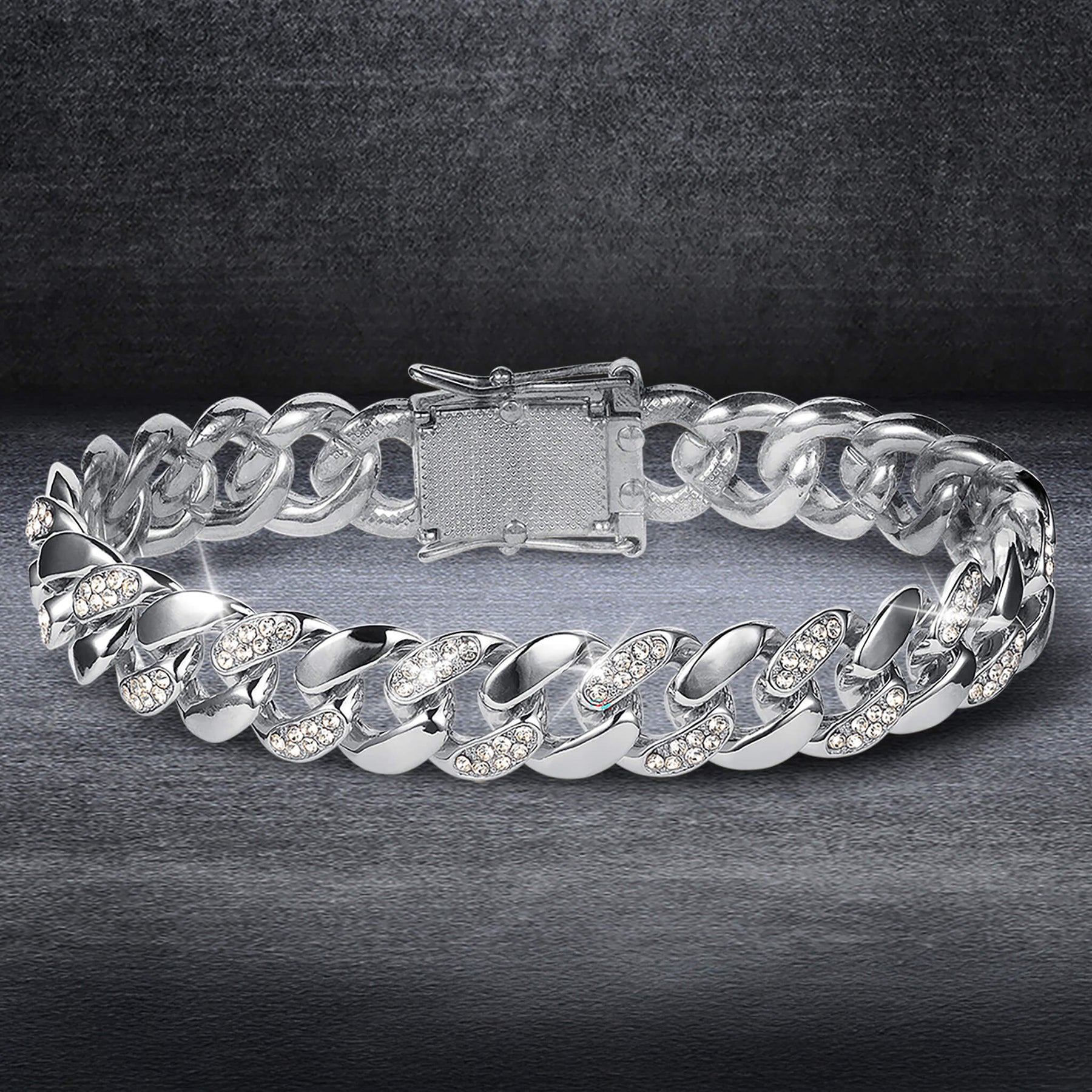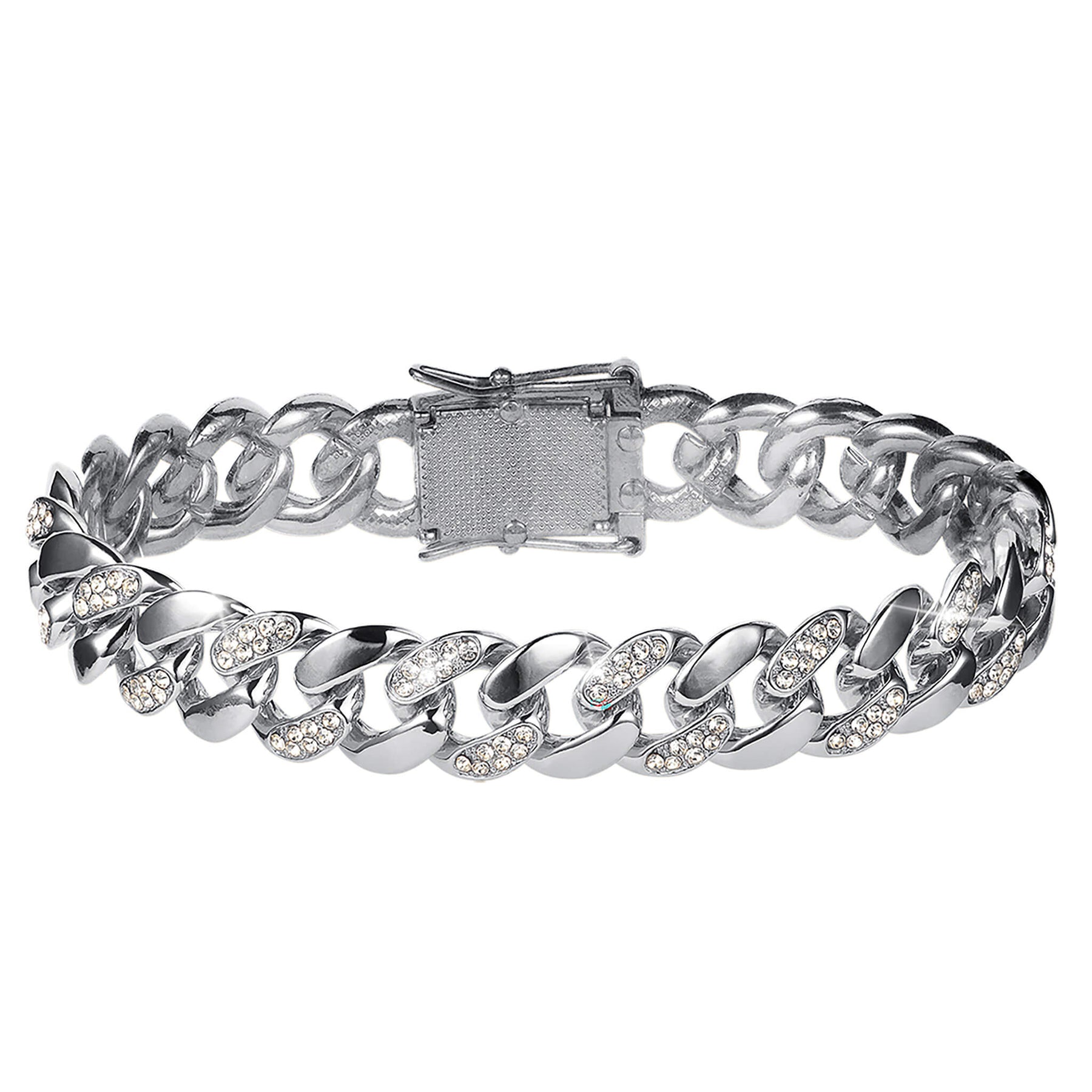 Redefine your daily style with a bold twist on a classic. This bracelet is expertly crafted in premium stainless steel, showcasing a timeless curb link design elevated by alternating polished and gem-set links. The interplay of smooth metal and sparkling gems creates a striking contrast, balancing strength with refined brilliance. Finished in sleek steel, it delivers effortless impact with every wear.