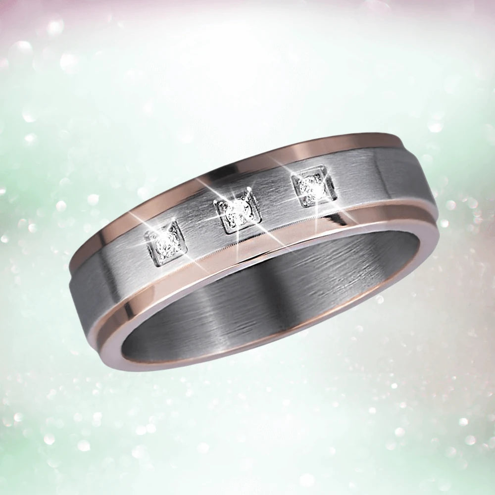 Premium grade 316L solid stainless steel is the starting point for our magnificent Daniel Steiger Diamond & Steel Trio Bracelet & Trio Ring collection. The stylish ‘Trio’ bracelet features a leather strap, 18k rose gold plated accents and 3 genuine sparkling diamonds, the perfect balance of casual yet luxurious. The multi layered ‘Trio’ ring is lavishly plated in 18k rose gold & the middle Steel band is set with 3 genuine diamonds. Each piece is dispatched in one of our magnificent presentation cases.