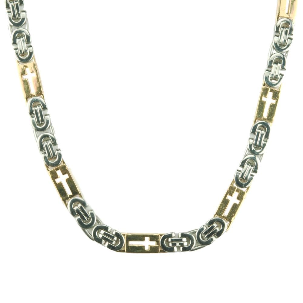 We make sure all our men's jewelry is the perfect weight. Each piece has just the right 'handle' to re-assure you of the quality and attention to detail that goes into each piece. Our new Alto Cross Collection is certainly no exception to this "set in stone" policy we have adopted. Engineered from premium grade stainless steel this multi-link necklace and bracelet are 2 tone plated with luxurious 18k Yellow Gold. Purchase both pieces to save even more.