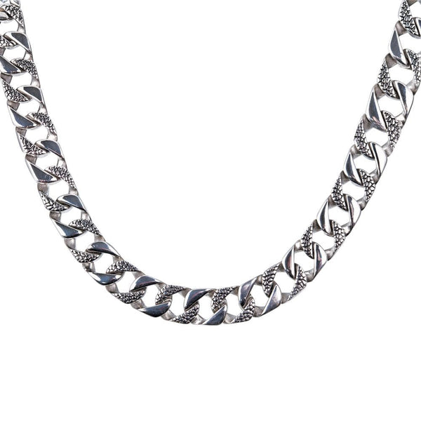 We have added an interesting designer twist to a classic heavy weight curb necklace in the form of an embossed reptile pattern. We have of course continued to use only the finest 316L premium grade solid stainless steel to maintain the feel and quality you expect.