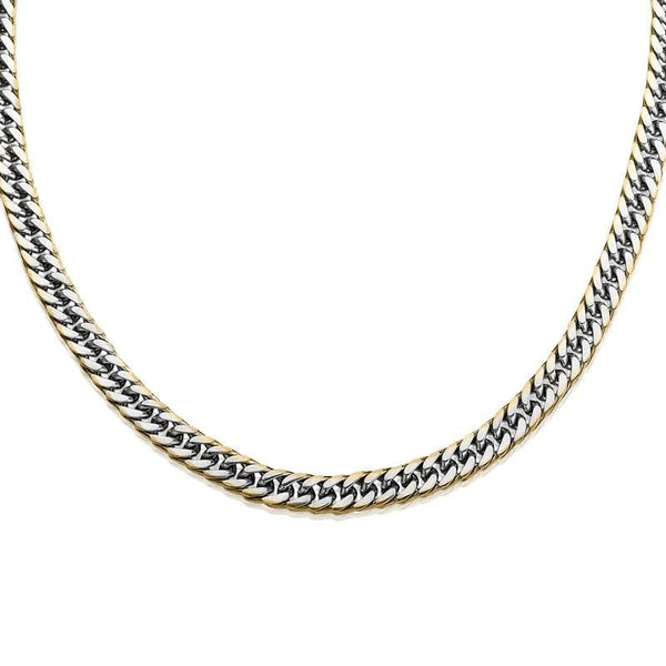 As with all our steel jewelry we have used only the best premium grade stainless steel. This classic double curb link design has been given a modern twist by the generous dipping of gold on the outer edges of the links, it takes real skill and precision for this to be applied in only the best of workshops; making a real point of difference to a fine jewellery item.