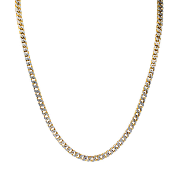 Simple and good-looking, this versatile necklace and bracelet will be sure to become a go-to item. Designed with every day wear in mind, this modern look for the man on the go is durable, comfortable and practical. The square box shape rather than a flat look adds another dimension. Expertly crafted from premium grade stainless steel, with a two tone finish to give a sleek look. A stylish collection for the refined gent.