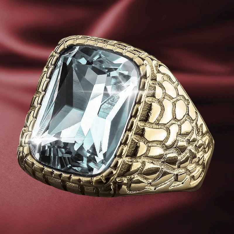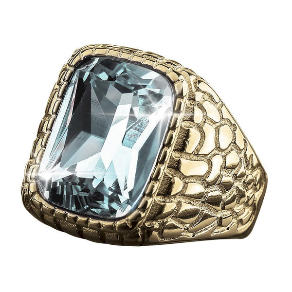 There is so much to talk about with regards to our new Glacier Ice Ring. where to start? Firstly the gem at the heart of the ring, each piece is created under the strictest of laboratory conditions, 14.22ct of our signature lab created Diamondeau® - flawless simulated diamond? in stunning glacier ice blue. Set in a textured mount and finished in 18k yellow gold. A real statement piece.