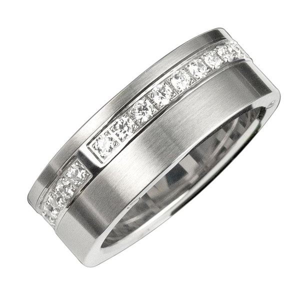 30 of our flawless Diamondeau® - flawless simulated diamond gemstones are expertly set into this 316L premium grade steel men’s ring. These amazing gems are created under laboratory conditions, they can cut glass just like a mined diamond actually have more fire with in each stone than a mined gems. Magnificent presentation case included.