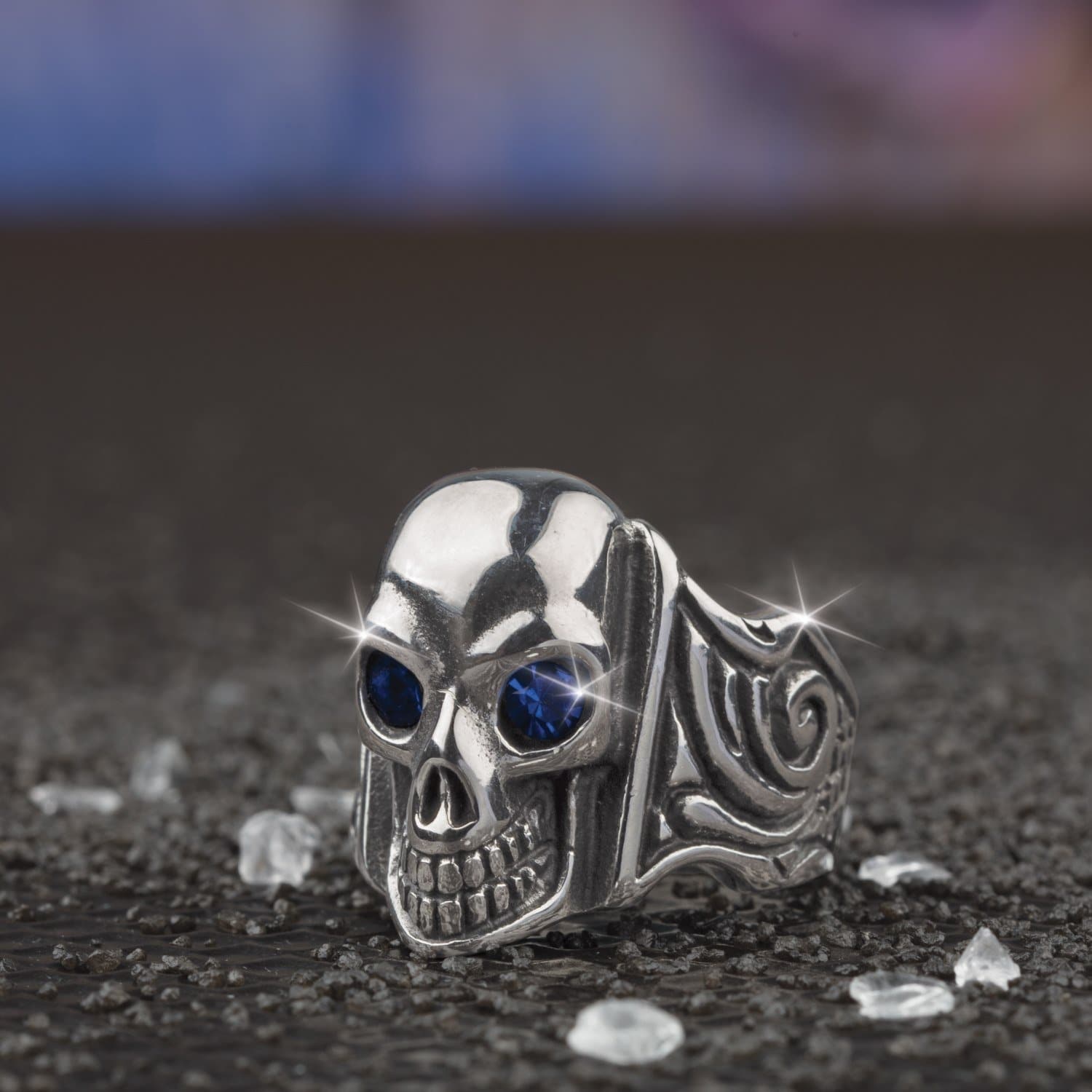 Ole Blue Eyes Steel Skull Ring