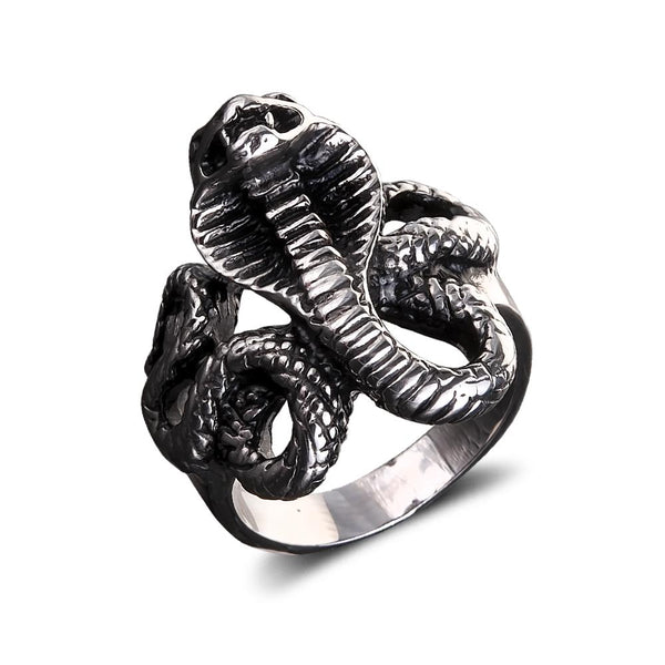 Each link of this powerful solid stainless steel bracelet is engineered from a single coiled Cobra, that looks as if it is ready to lash out with a venomous bite.