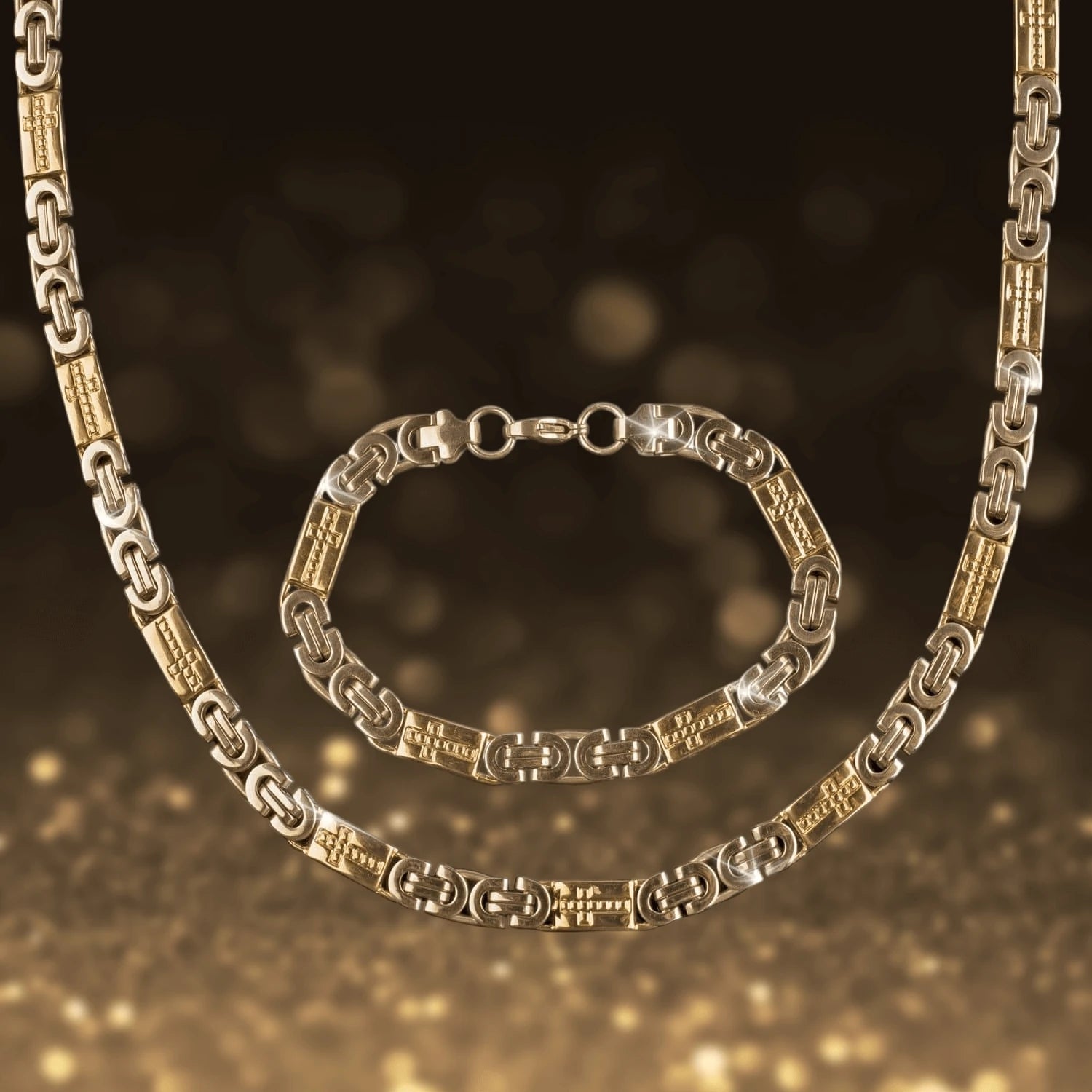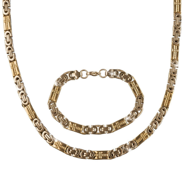 Crafted from premium grade stainless steel this multi-link necklace and bracelet collection have been generously plated with luxurious 18k yellow gold. A perfectly balanced piece of quality and craftmanship. A truly subtle symbolic statement. Purchase both pieces together to make even more savings.