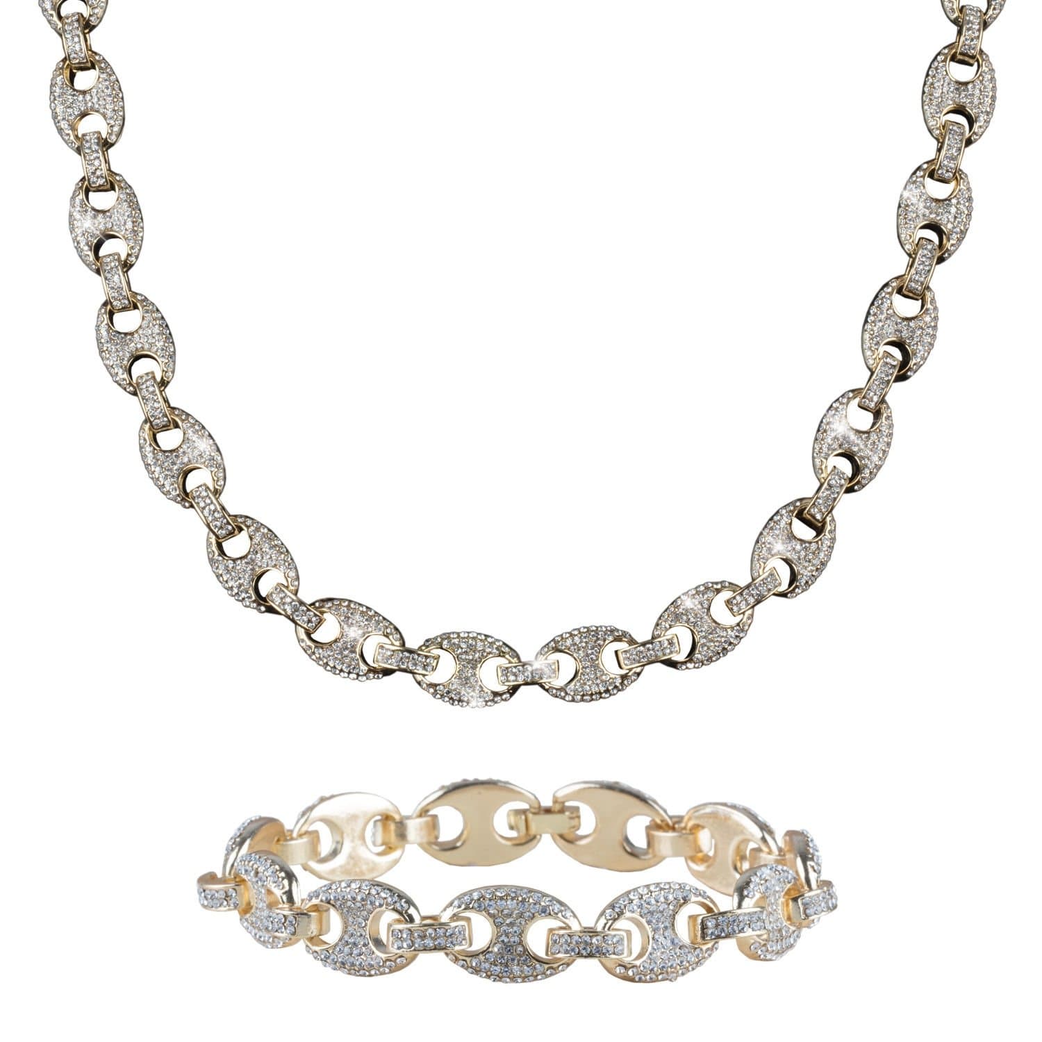 A Mariner chain resembles the chains attached to an anchor on ships and boats, hence its name. This style of chain comes in a traditional, slightly rounded edge design or a flat link style. Here we have crafted a puffed style in gold plate set with nearly 2,700 sparkling crystals. A stunning collection that every jewelry wardrobe should have.