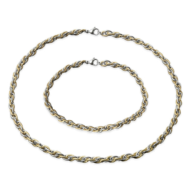 This collection is elegantly crafted in premium quality stainless steel. A classic Prince of Wales chain, formed from highly polished links and yellow gold textured links for a warm and classic tone. Adaptable enough to be worn every day or just for a special occasions. Every piece is complete with our signature presentation boxes, keeping your jewelry sparkling and ready to wear.