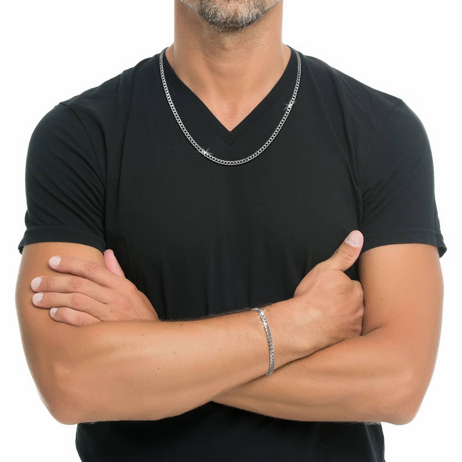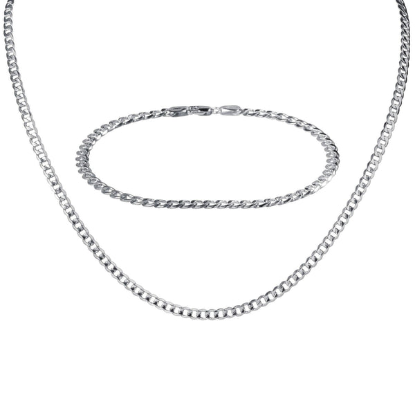 A refined look, classic designs never go out of fashion. This curb set is a key staple for your jewelry collection. Handcrafted by artisans in northern Italy this solid 925 sterling silver necklace and matching bracelet is a must have accessory. Intricate oval links in a length of 20” for the necklace and 8.5” for the bracelet, the optimal option for any occasion. Purchase the set in 4 easy payments with our payment plan.
