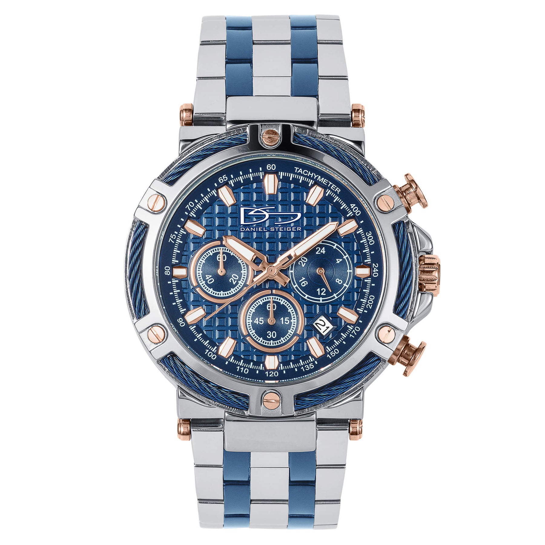 The stainless steel band of this watch is more than just a mere accessory, it’s a statement! Complemented by blue IP links running through the bracelet strap, it exudes a sense of contemporary elegance. It’s the details that truly set this watch apart. The bezel, adorned with rose screws and blue rope detailing, adds a distinctive nautical touch to the design, reflecting a spirit of adventure and exploration. The blue dial of the watch serves as a focal point, housing a chronograph movement and a useful date window. Add a touch of personality to your wrist.
