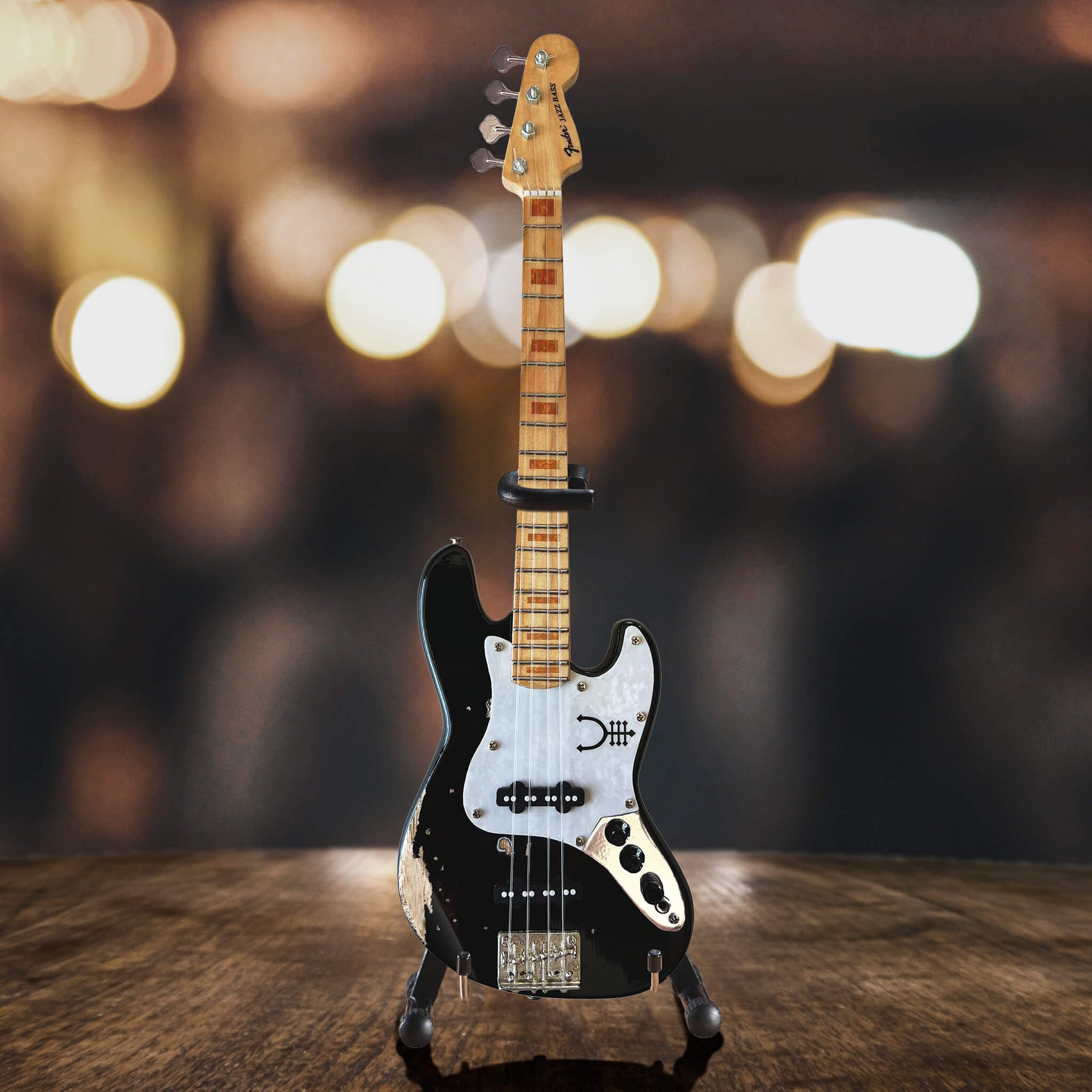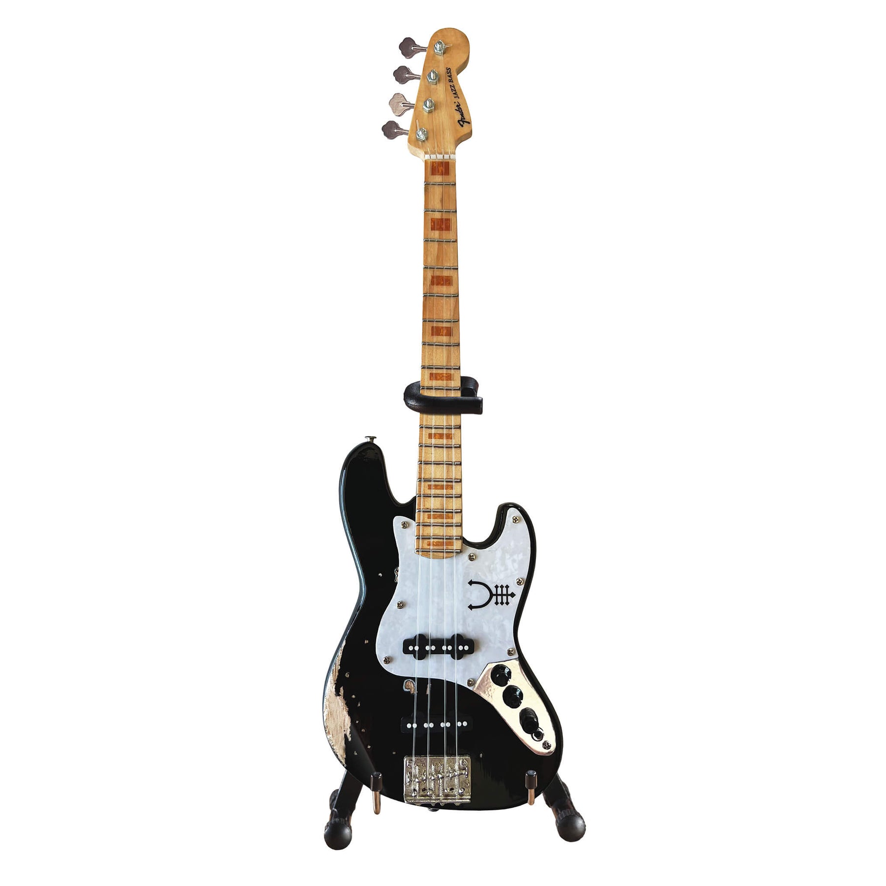 Standing as a perfect replica of Geddy Lee’s famous bass guitar, this miniature showcases the distinctive features that made his instrument legendary. From the vintage – style finish to the accurately detailed body, neck and headstock. These guitars are handcrafted from solid wood with metal turning keys and 1:4 scale with realistic strings and stand for easy display, these replicas are sure to impress.
