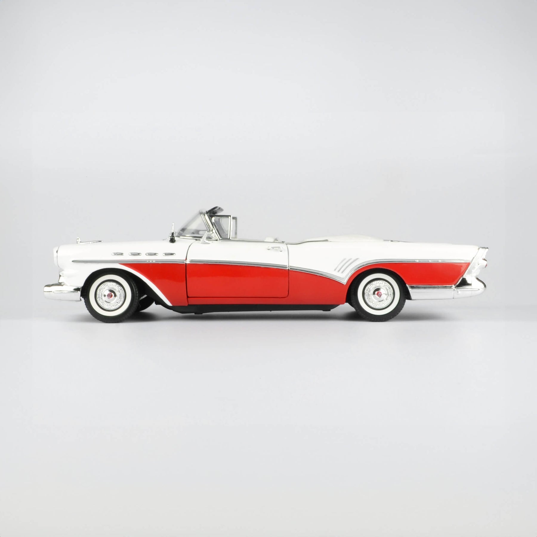 This “master” of the road has been resurrected in 1:18 scale with all the details you remember. Chromed toothy “man-eater grilles, 300HP V-8, deluxe wraparound windshield and of course the trademark chrome portholes. Every aspect of this classic car has been faithfully recreated to capture the essence of its legendary design. The vibrant two tone paint finish gleams under the light. Admire the intricate interior detailing, from the plush upholstery to finely crafted dashboard and steering wheel.