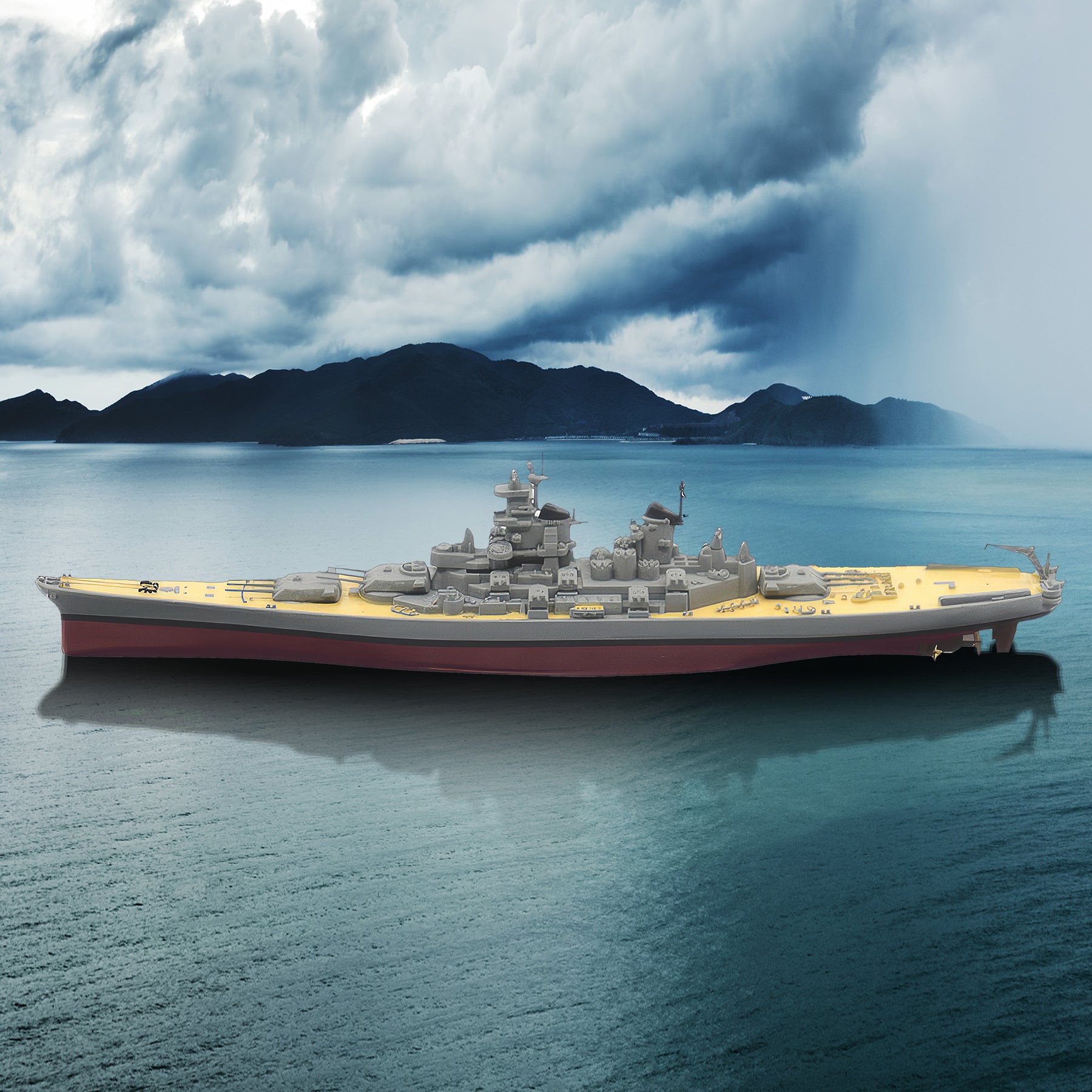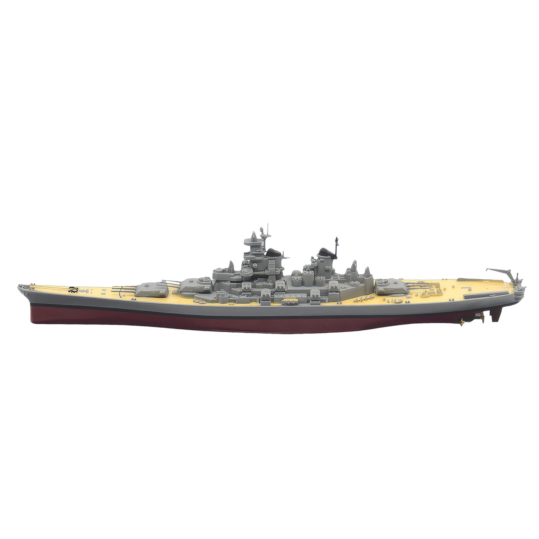 A true masterpiece of naval history meticulously recreated in stunning detail. This collector’s item is not just a model; it’s a tribute to the legendary battleship that played a pivotal role in some of the most significant moments of World War II. Authentic and precise detailing of the superstructure and hull that mirrors the majestic grandeur of the original. A standout feature is the recreated bronze painted propellers, adding a layer of realism to the model. Encased in a protective acrylic display case, this model stands as a beacon of naval history, ready to be showcased with pride.