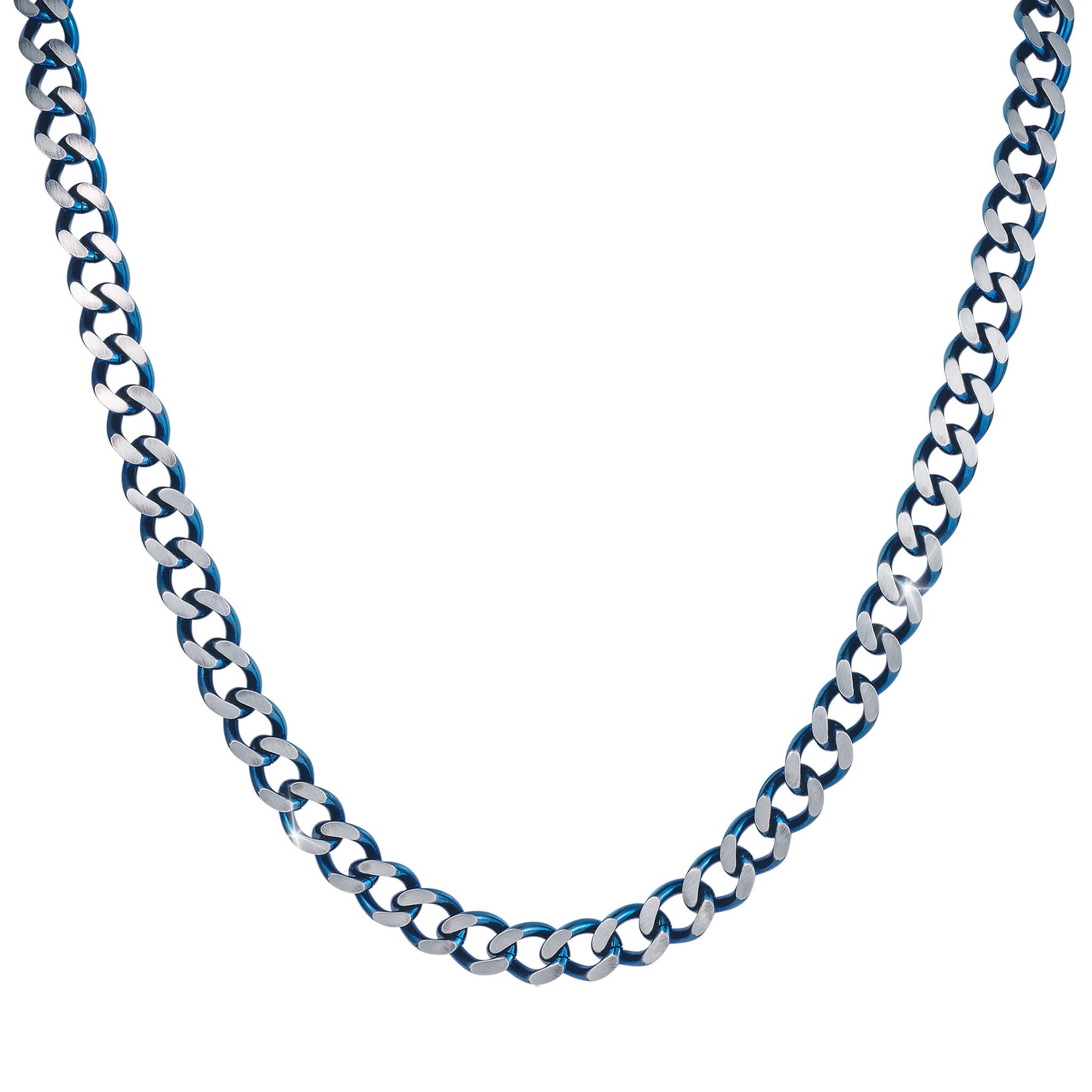 Constructed from premium stainless steel with an innovative IP blue finish, this necklace embodies a bold, masculine aesthetic while maintaining an air of refinement. The durable stainless steel links are beautifully contrasted by the vibrant blue tones that evoke a sense of power and confidence. A perfect balance of classic and contemporary, the blue finish symbolizes strength, focus and calmness which are qualities that resonate with the modern man’s journey. This piece is ideal for those who embrace their individuality, combining a sharp, clean look with a touch of daring grace. This necklace adds a cool, confident allure to any ensemble.