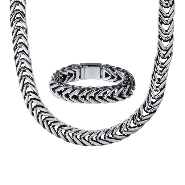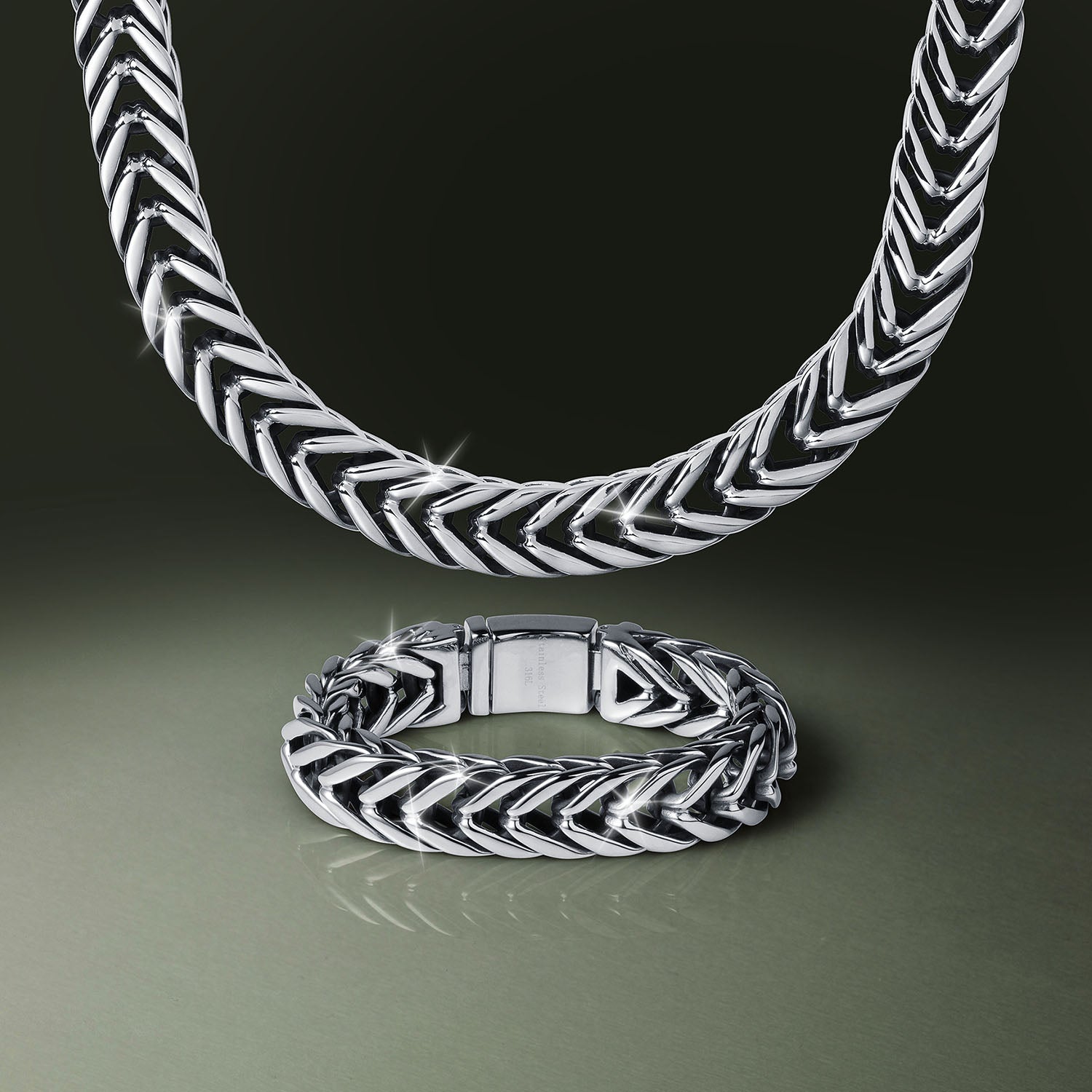 This collection is perfect for any occasion. Our designer handcrafted this 3D classic collection with the dream of bringing out the true elegance in each and every piece. Each link is hand- joined by master craftsman. This twist on a classic is crafted from premium grade stainless steel, polished to a glorious luster. This set is sure to elevate your style statement.