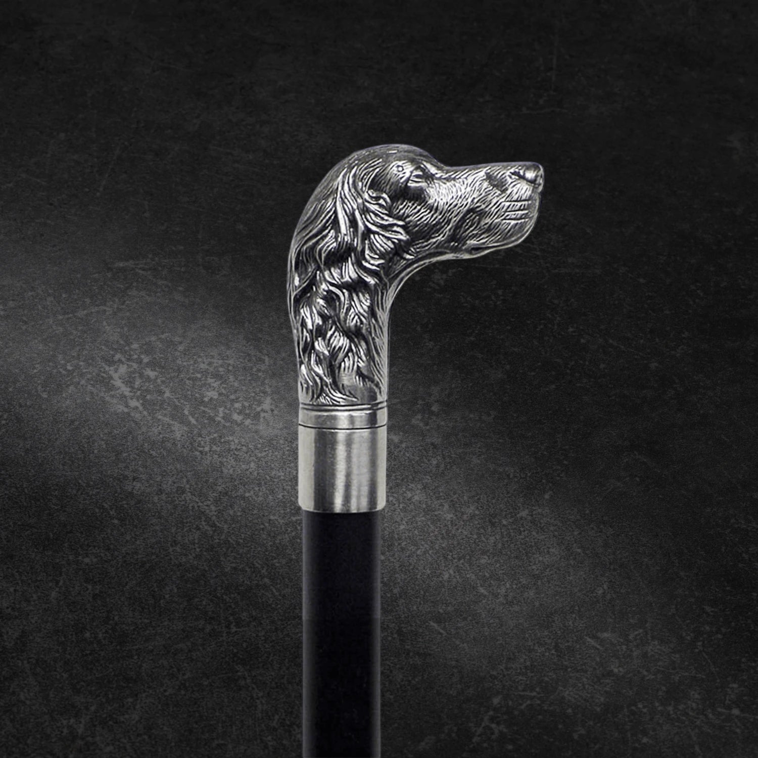 An ornate dog head, sculpted with remarkable precision and artistry. The ornate canine head exemplifies the noble spirit of man’s best friend. Each one is expertly crafted from metal. These modern walking canes offer you support no matter the terrain—from city sidewalks to sandy beaches.